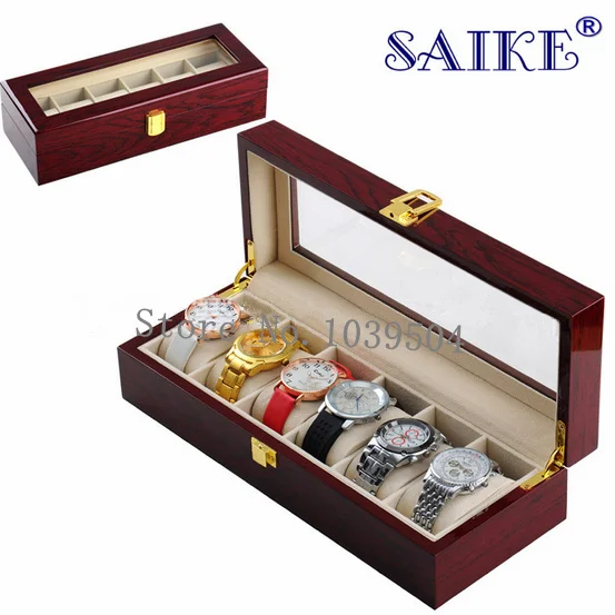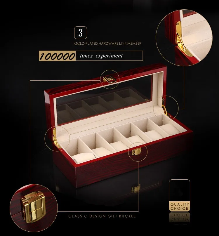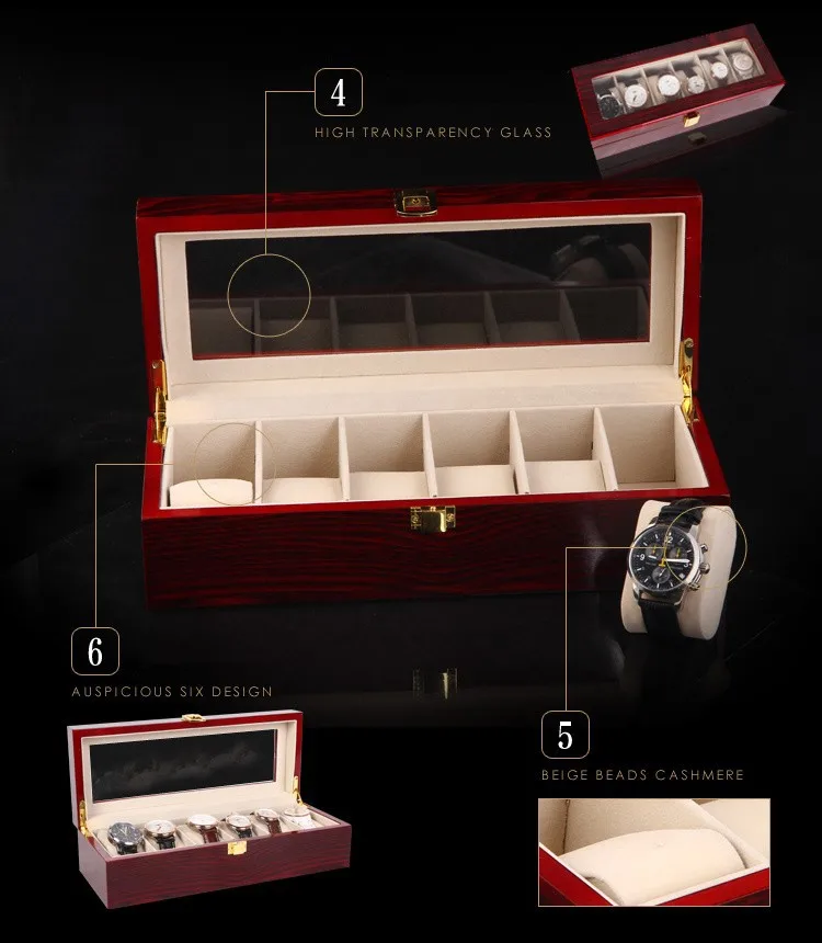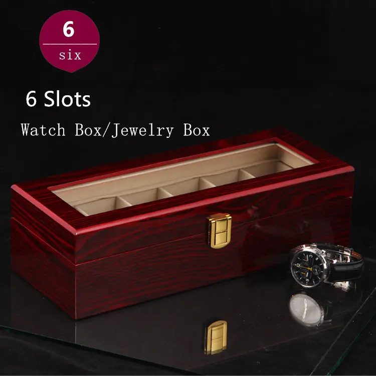 (Специальная цена) деревянный органайзер для часов с 6 слотами, светильник, красная MDF деревянная коробка для часов чехол для дисплея ювелирных изделий, Подарочный чехол, держатель