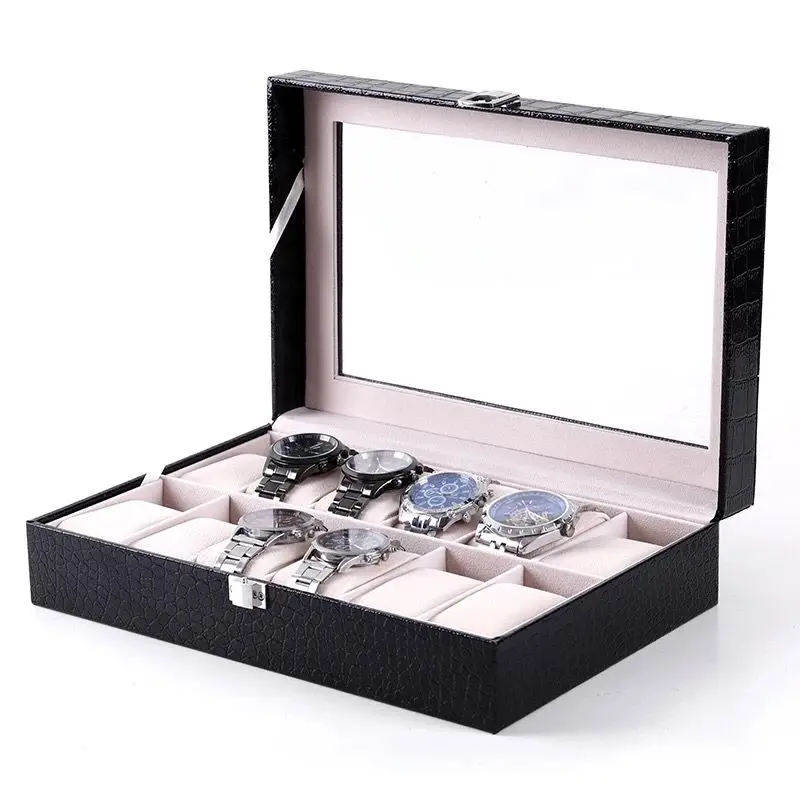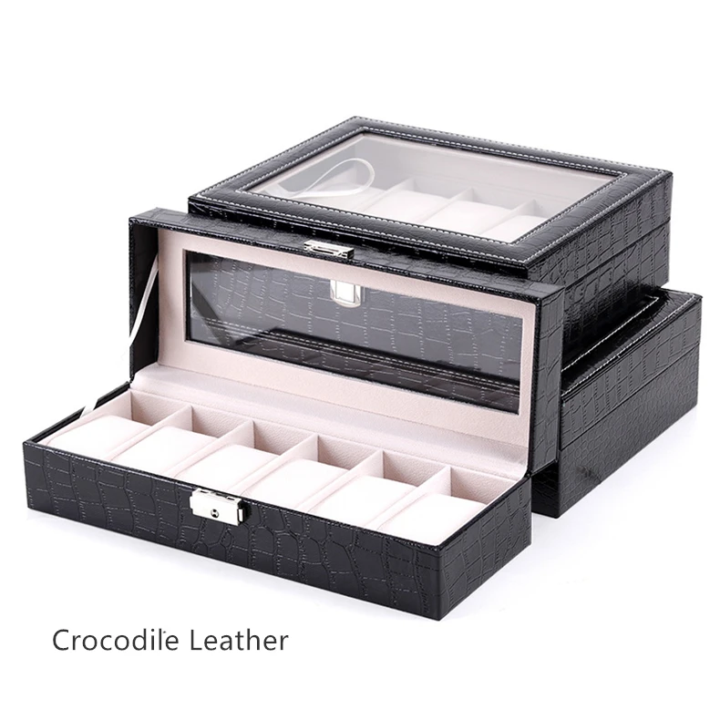 Новый крокодиловой кожи часы Дисплей коробки чехол механические часы ящик для хранения Организатор черные часы хранения шкатулка для ювелирных изделий