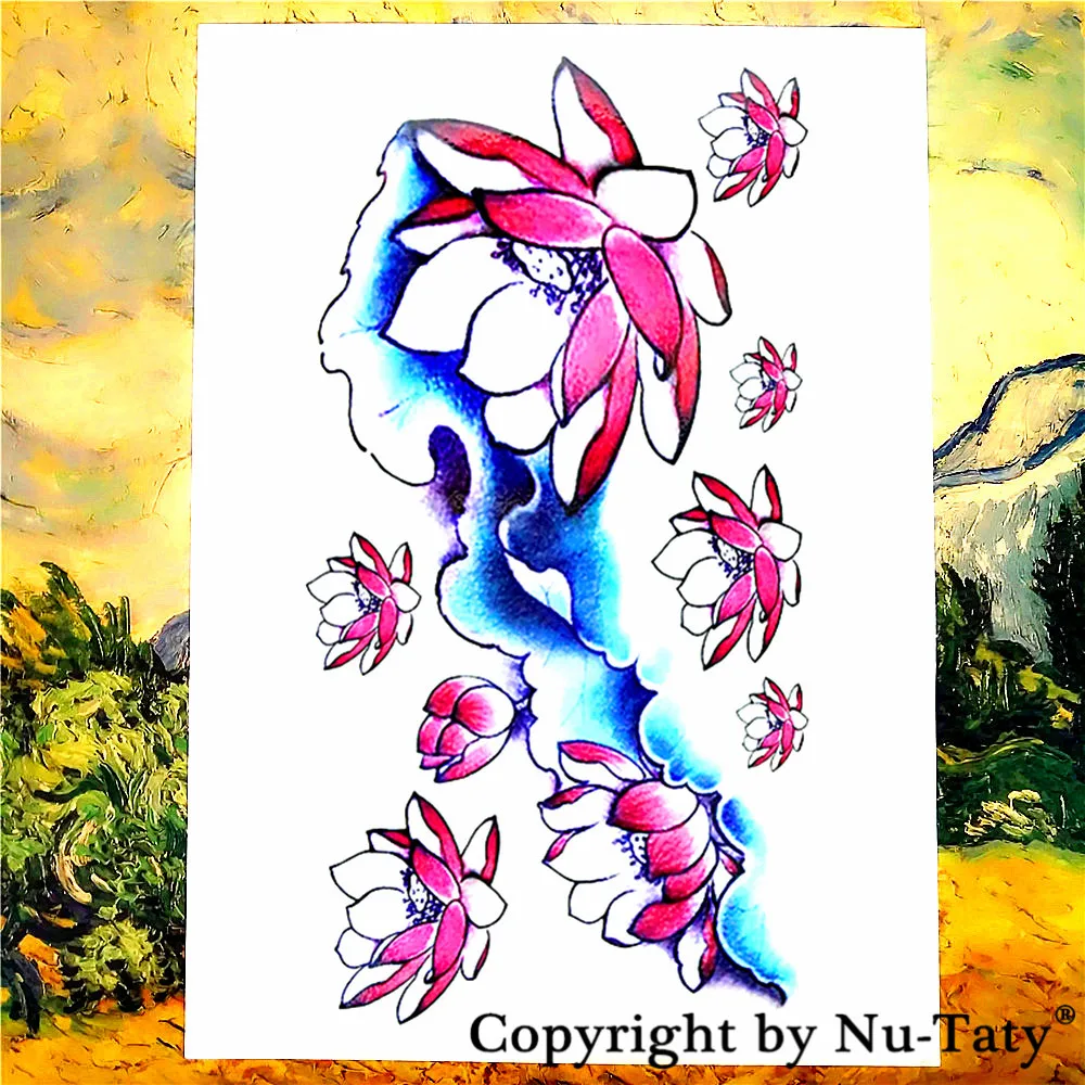 SHNAPIGN розовый Лотос флэш-тату ручная наклейка 10,5*6 см маленька...