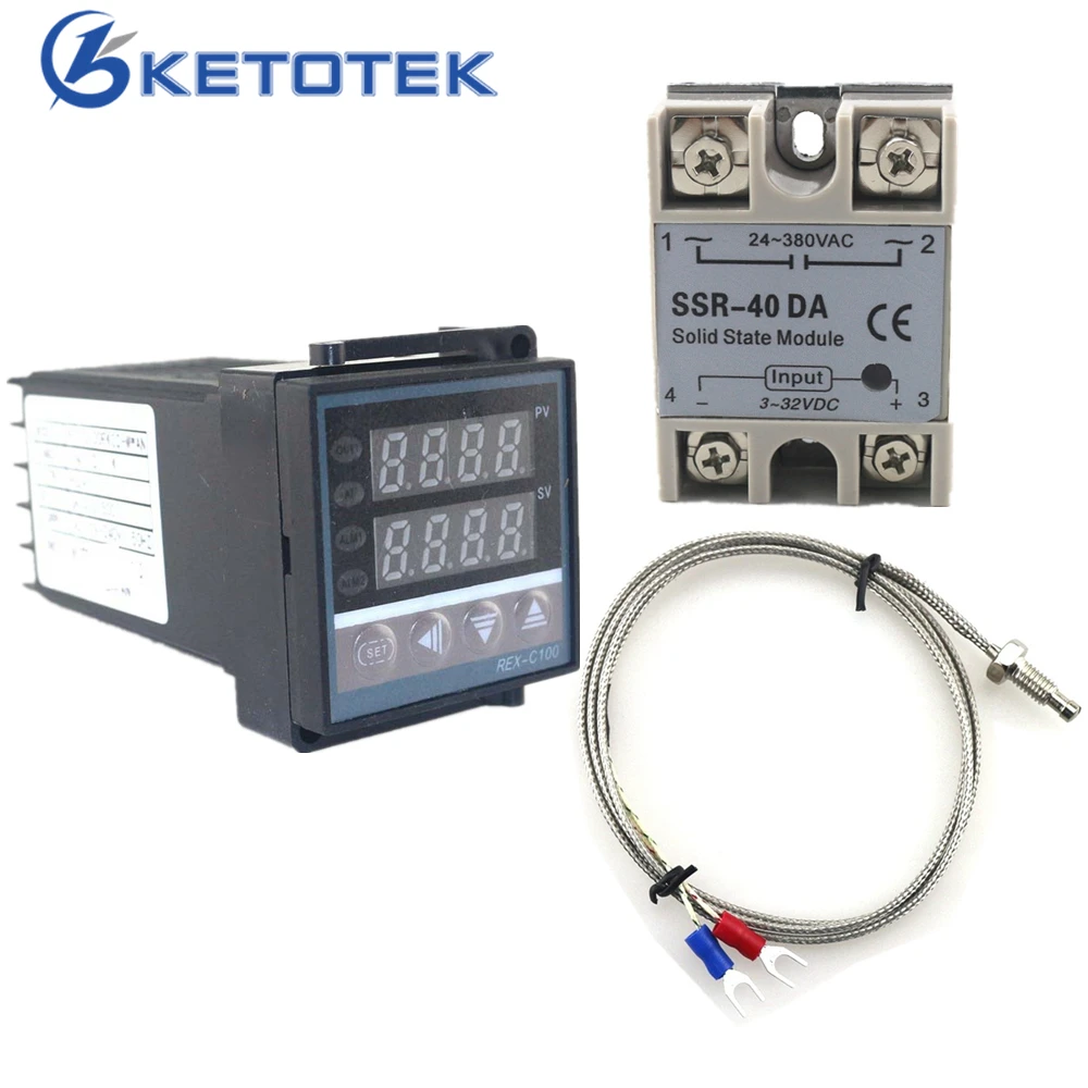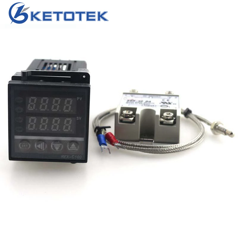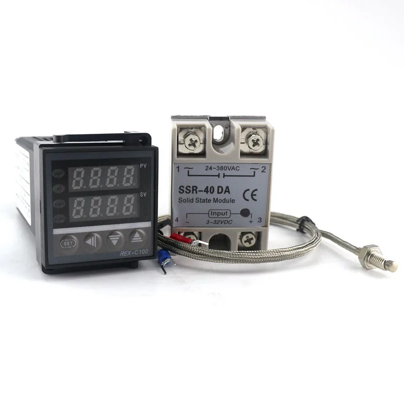 Цифровой ПИД-регулятор температуры REX-C100, выход SSR 0-400C с термопарой 1 м K SSR 40A