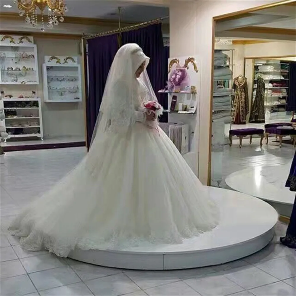 Винтаж 2019 мяч Дубайский арабский мусульманское свадебное платье с хиджаба, длинный рукав Свадебные платья novia свадебное платье es