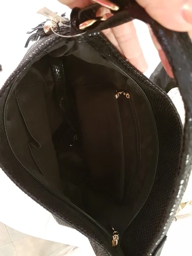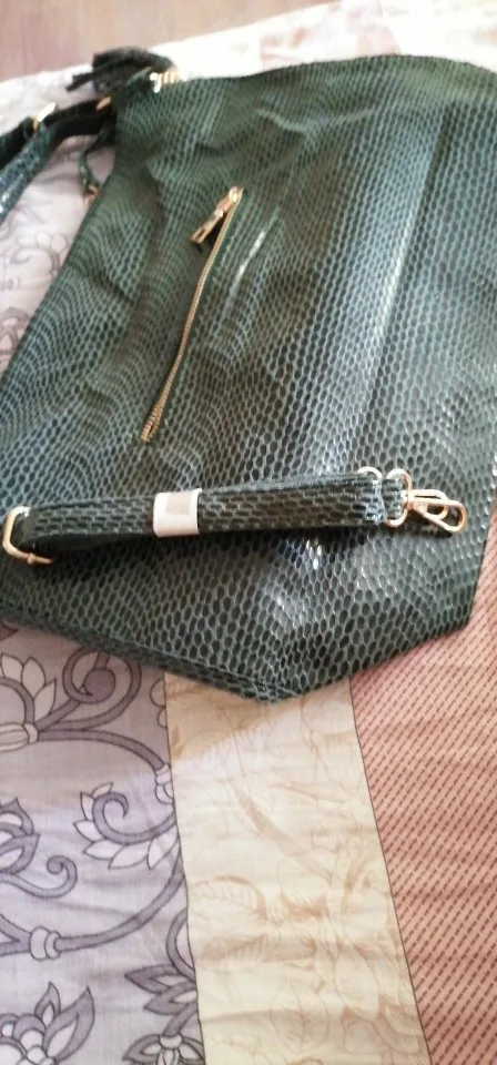 Сумка пришла быстро. Сама сумка, ну... совсем на кожу не похоже, скорее тряпочка. На руках остаётся черная краска, трудносмываемая. Даже боюсь её со светлой курточкой носить.
