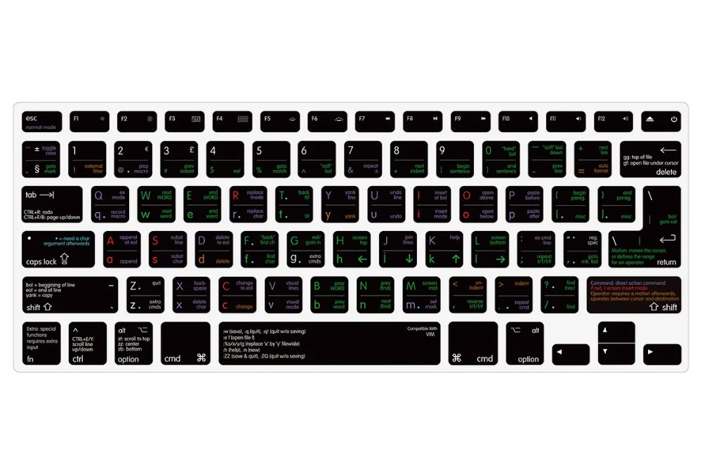 ВVIM/VIКлючевые слова напечатаны на прозрачном силиконе для длительного профессионального вида, Сверхтонкая кожа облегчает ввод текста, легко наносится и удаляется для очистки или дезинфекции. 100% новый и высокое качество. Наши продукты гарантированы качеством. Добро пожаловать на оптовую и прямую доставку! HRH, изобретатель кожи клавиатуры и продолжает искать лучшее качество с модным дизайном, чтобы обеспечить органический кашемир. HRH hand screen keyboard skins-это ремесло, которое не может быть продублировано машинами и другими продавцами. Это стандарты ЕС и английский Стандартный чехол для клавиатуры Подходит дляMacbook Air Pro Retina 13 "15" 17" Легко моется, сухая чистка может быть повторно использована позже. Водонепроницаемый, больше не нужно беспокоиться о воде, молоке, соке, кофе и других жидкостях, брызгающих в клавиатуру, при этом повреждая ваш любимый компьютер. Защита от пыли, может избежать попадания пыли, сажи, печенья и т. д. в трещины влияют на использование клавиатуры и срок службы клавиатуры. Удобная Чистка, готовая к очистке клавиатура всегда будет новой.Совместимость для:
