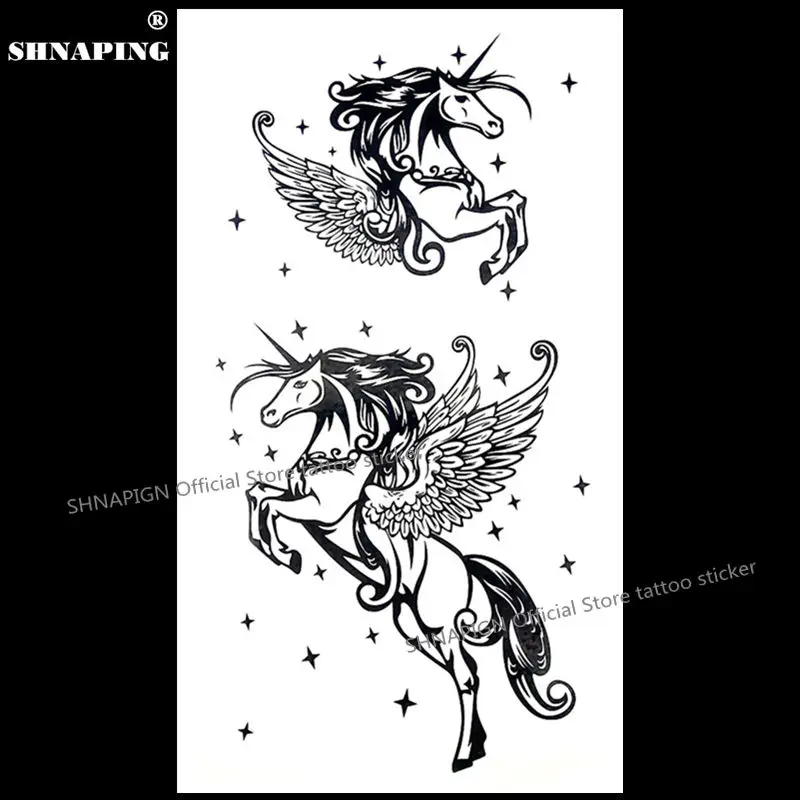 SHNAPIGN Сексуальная черная временная татуировка Пегаса, боди-арт, татуировка на руку, наклейка s 17*10 см, водонепроницаемая, женская, безболезненная наклейка