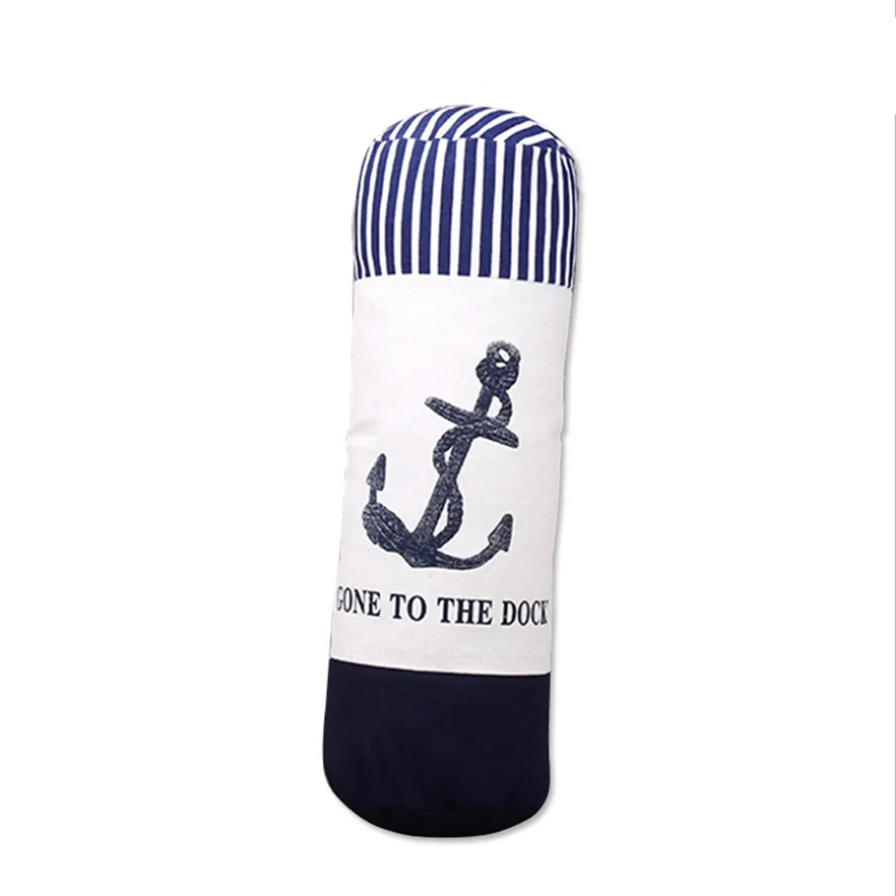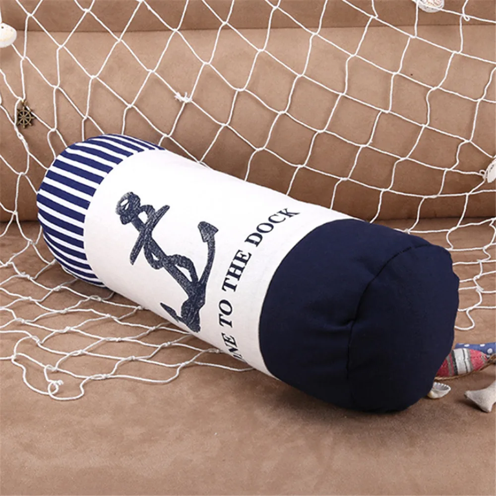Подушка цилиндрической формы 45x15 см, морской якорь в средиземноморском стиле, подушка из хлопка и льна для домашнего дивана, украшение