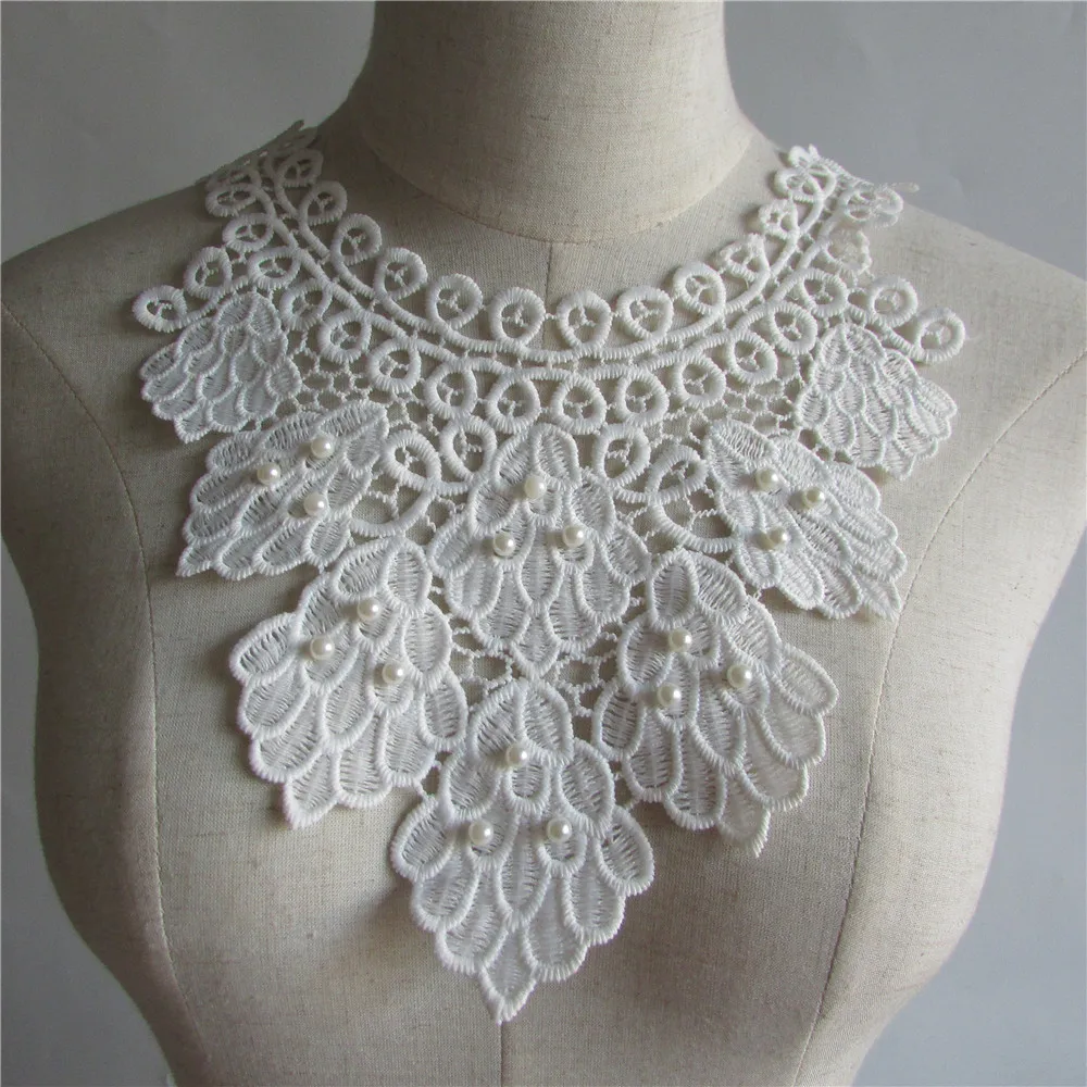 Вышитый белым жемчугом кружевной воротник с вырезом, аппликация Venise, вышивка, шитье на нашивках, ткань, сделай сам, аксессуары для одежды YL112