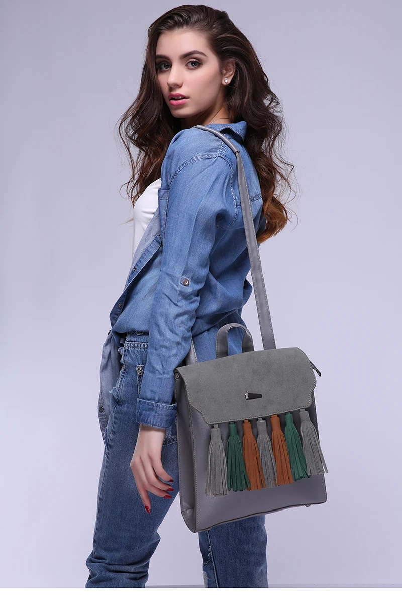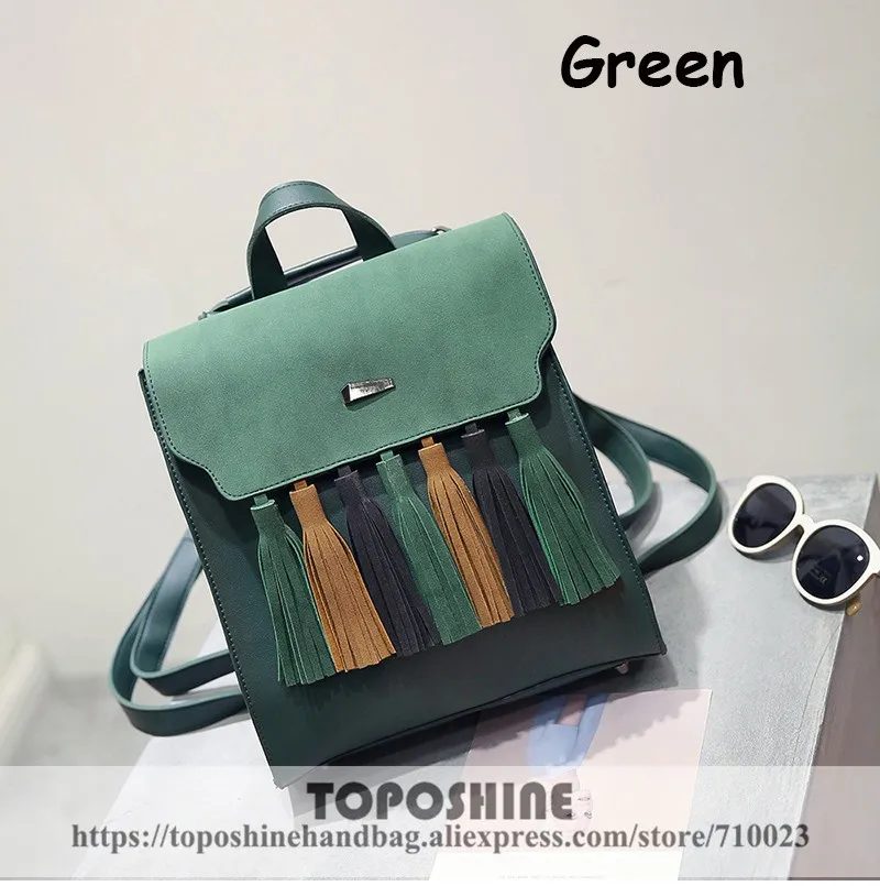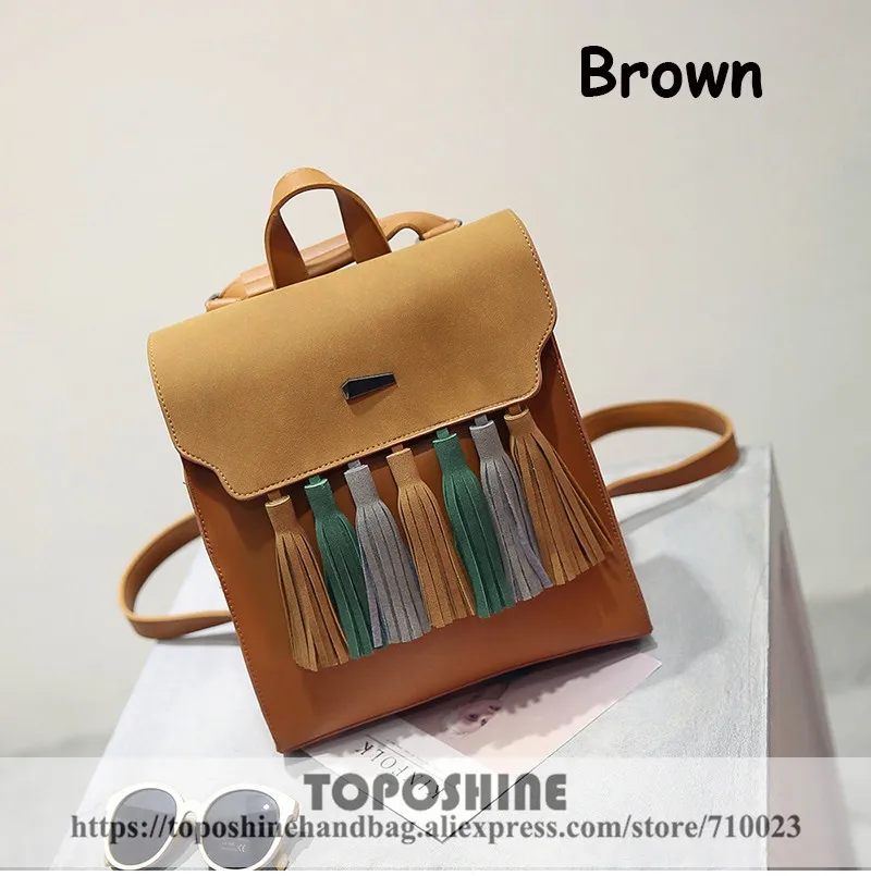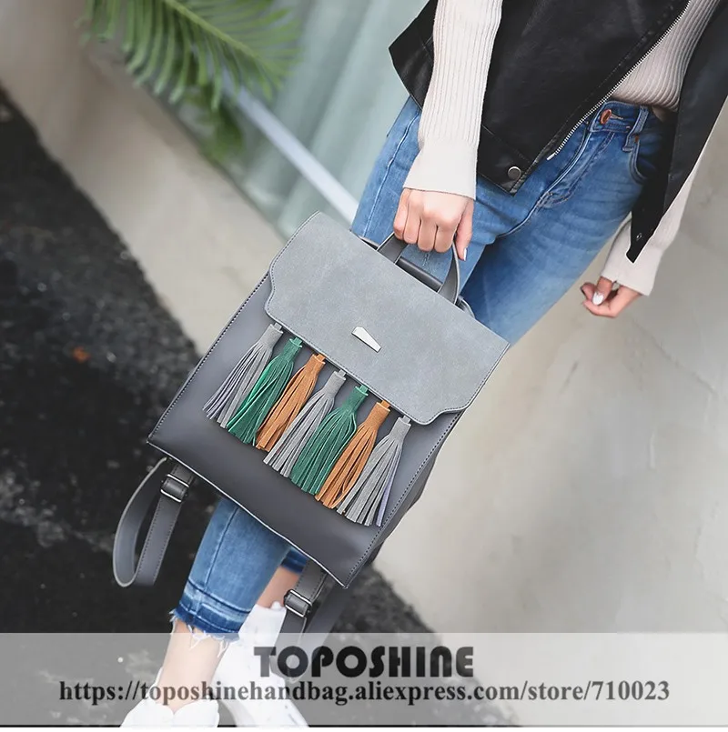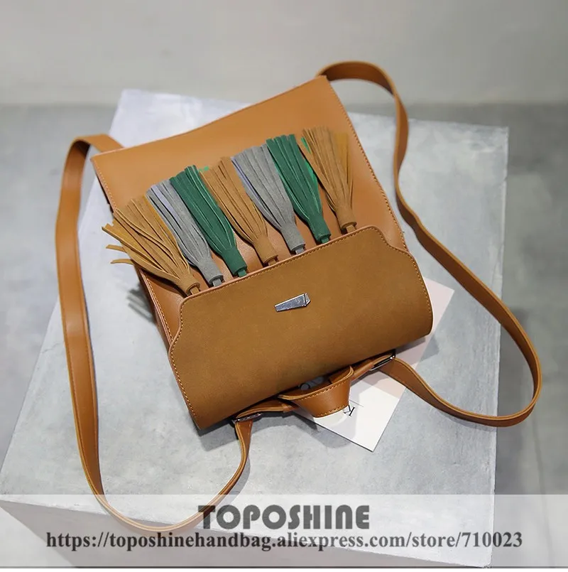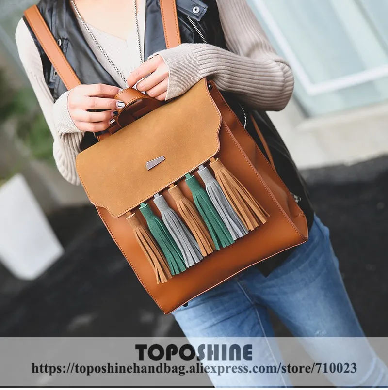 Модный Цветной квадратный рюкзак Toposhine с кисточками для девочек, женский рюкзак из ПУ кожи, модные школьные сумки 1617