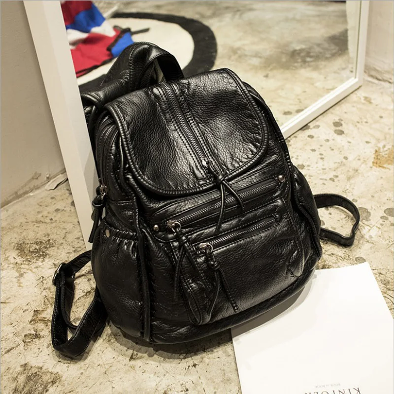Модный черный кожаный женский рюкзак, модная школьная сумка на шнурке для девочек-подростков, сумка для книг