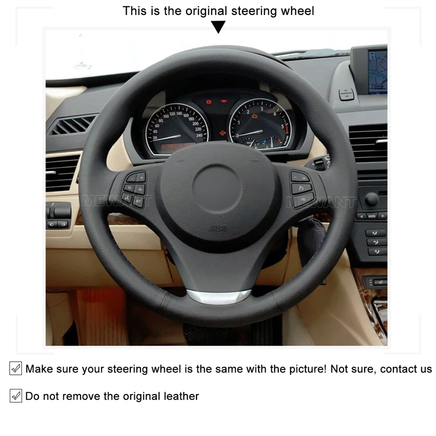 1. Пожалуйста, убедитесь, что ваше рулевое колесо совпадает с картинкой (форма и характеристики), если не уверены, не стесняйтесь связаться с нами.2. Чтобы хорошо подогнать руль, не снимайте оригинальную кожу перед установкой.