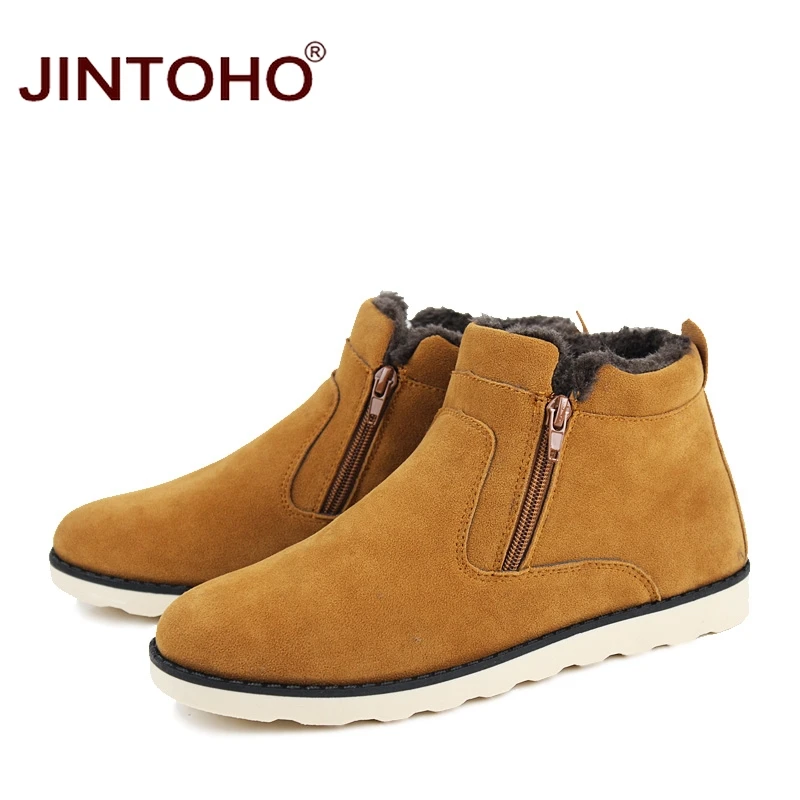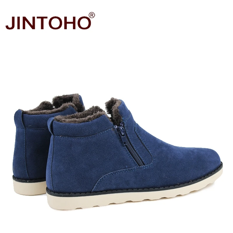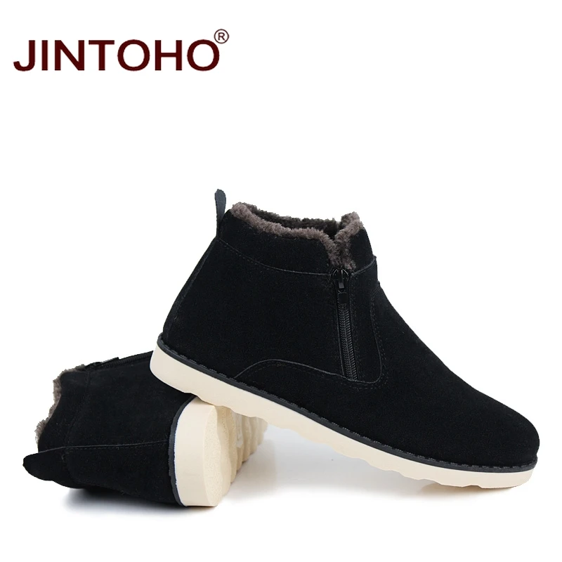 JINTOHO Мужская обувь большого размера, новинка 2018, модные зимние повседневные ботильоны, теплая зимняя меховая обувь, кожаная обувь