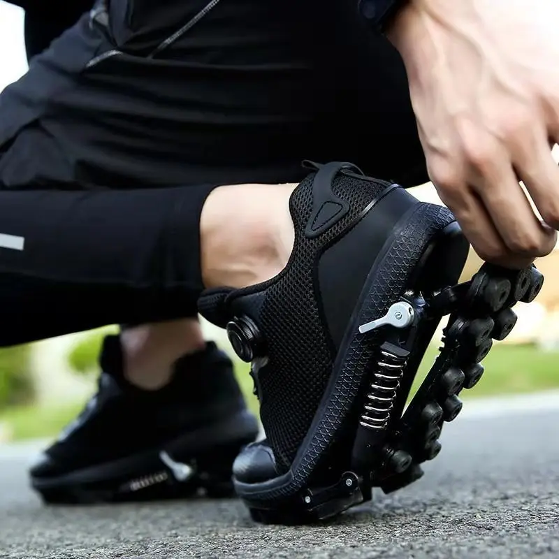 Механическая обувь со стальным пружинным шнурком, спортивная обувь 2 в 1, амортизирующая обувь