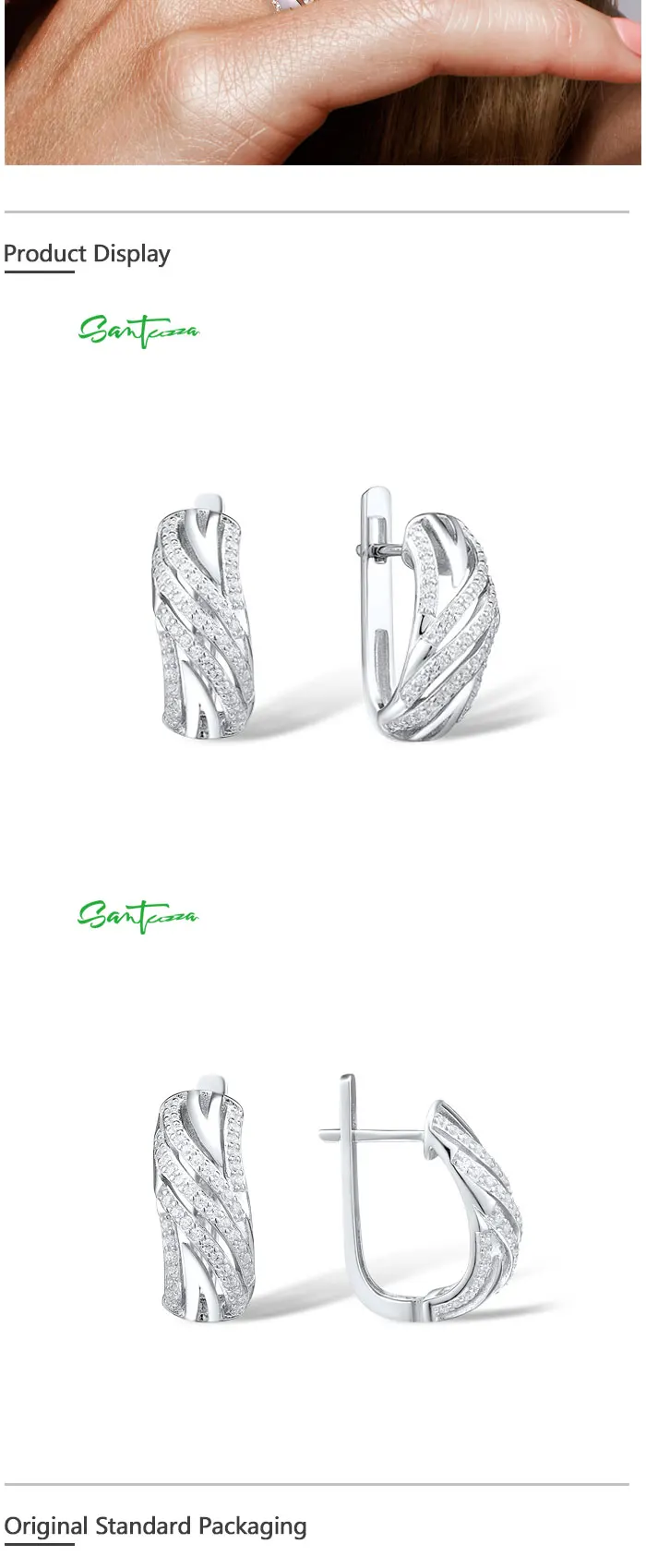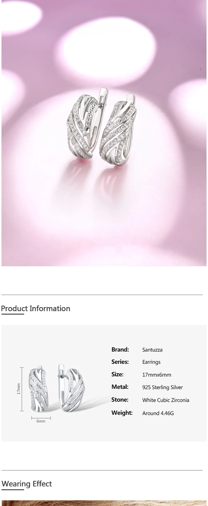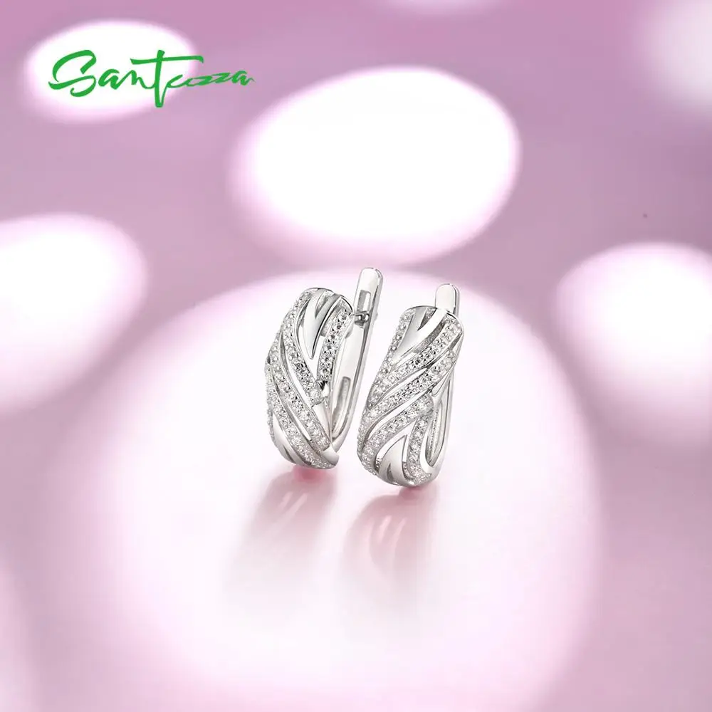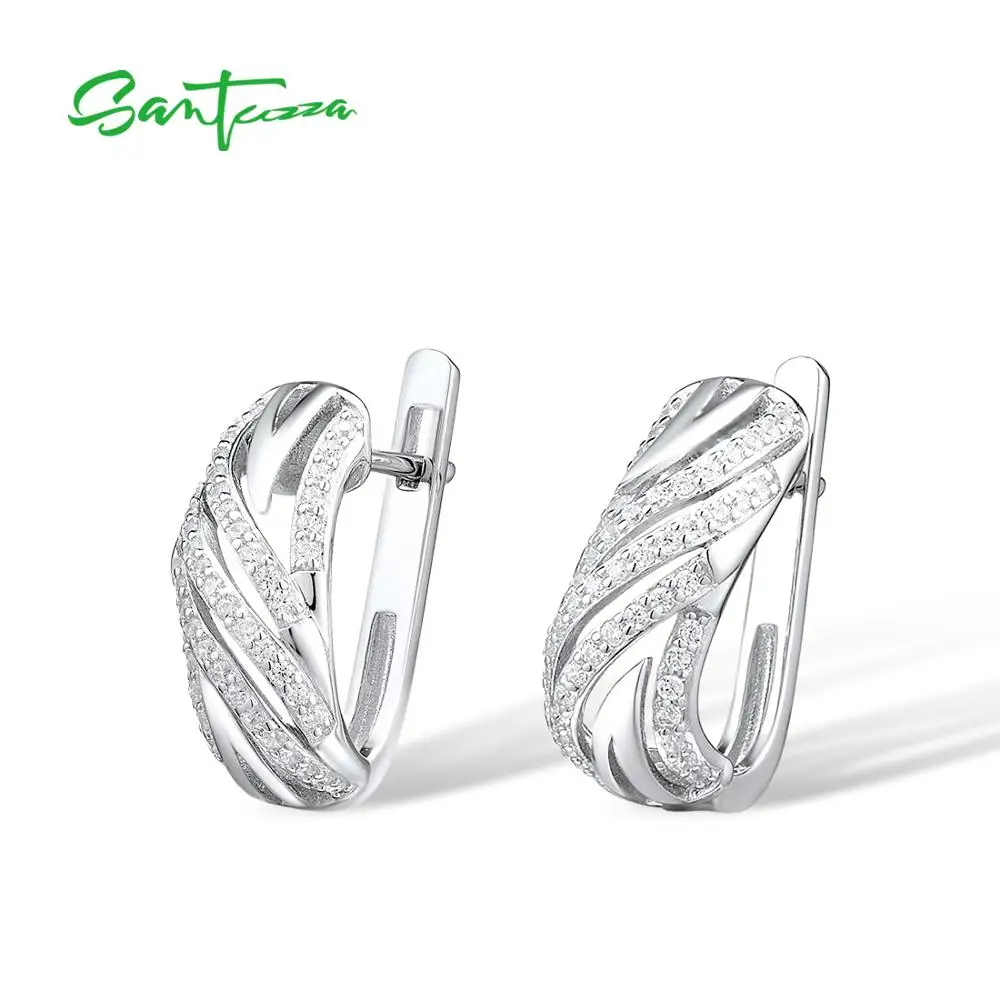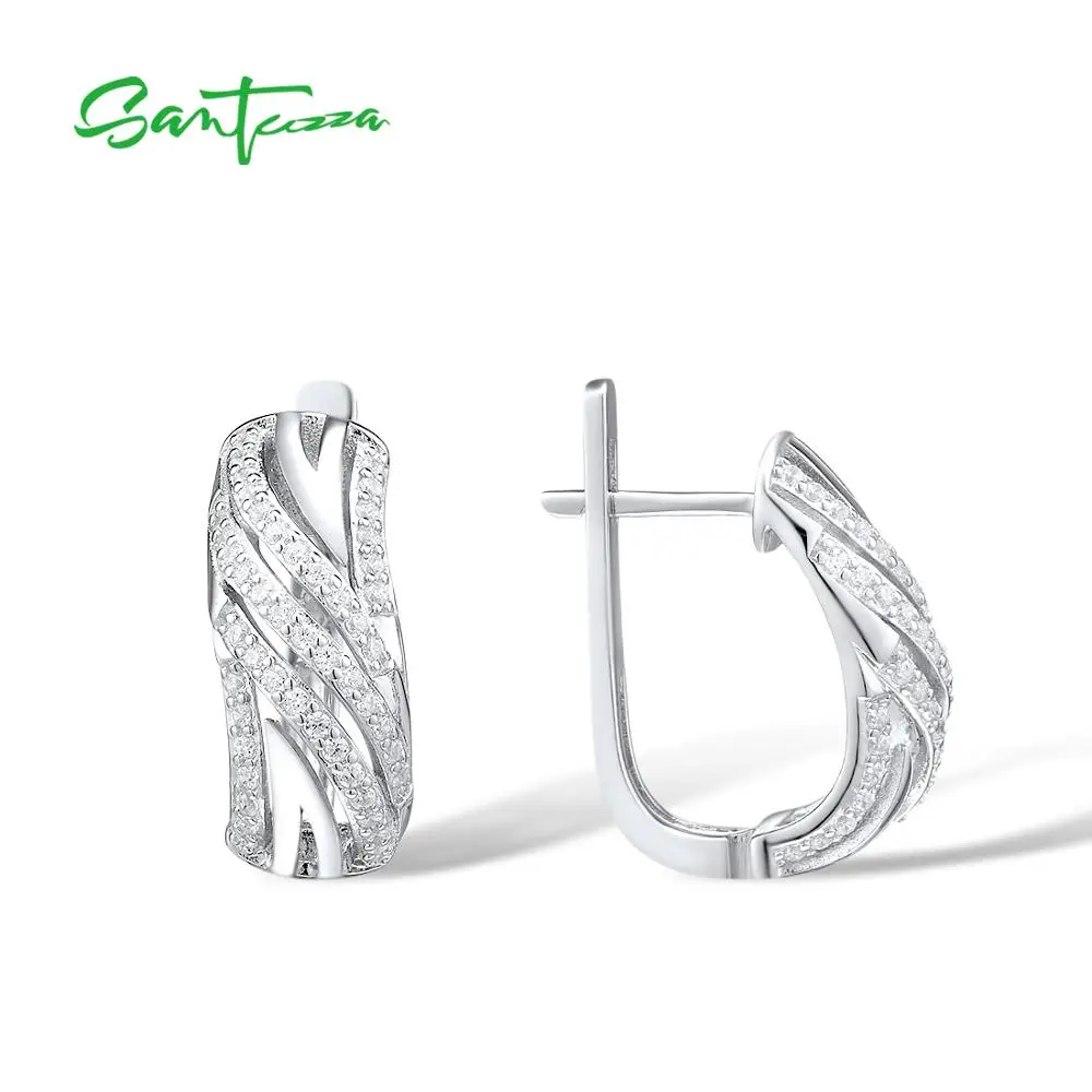 Женские серебряные серьги SANTUZZA, из серебра 925 пробы со сверкающим кубическим цирконием, модные ювелирные украшения
