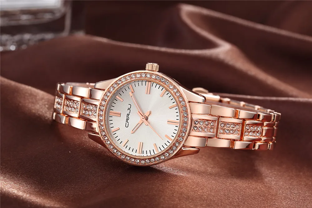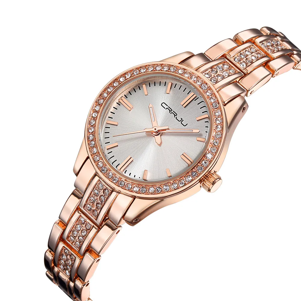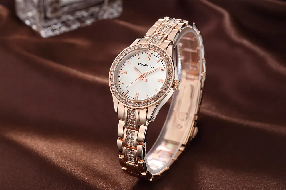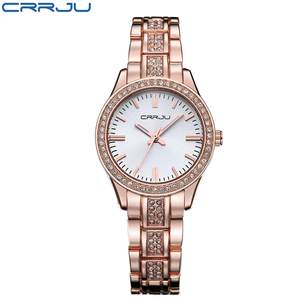 Часы женские кварцевые CRRJU, с золотистым браслетом, элегантные