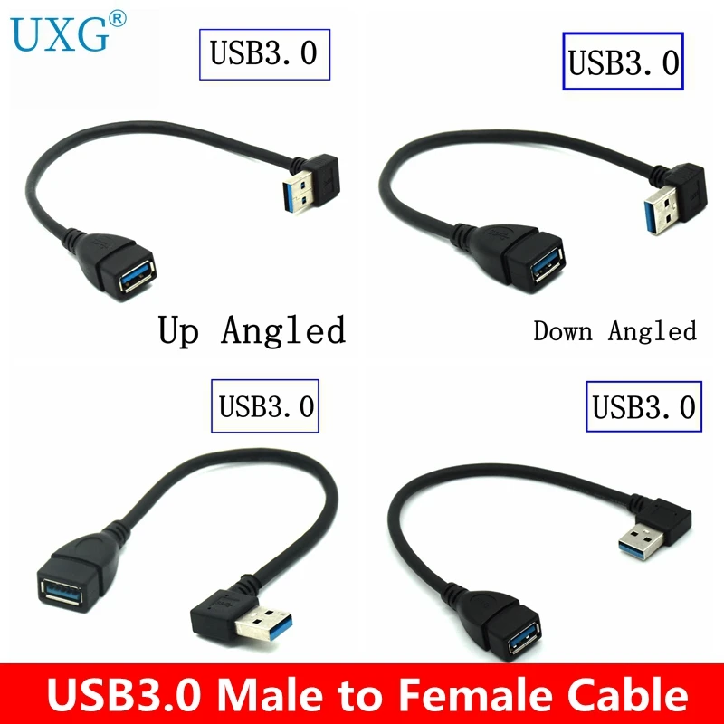 90 градусов правый и левый колено супер высокая скорость USB 3,0 штекер-гнездо Кабель удлинитель 15 см