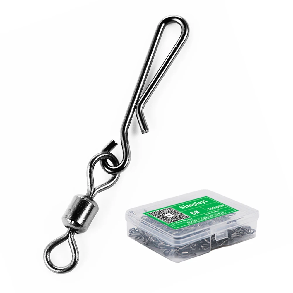 100PCS 2# 4# 6# 8# 10# Stainless Steel Fishing Swivels Interlock Rolling Swivel With Hooked Snap Fish Hook Connector Lure Tools