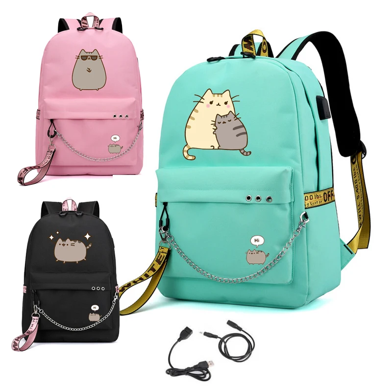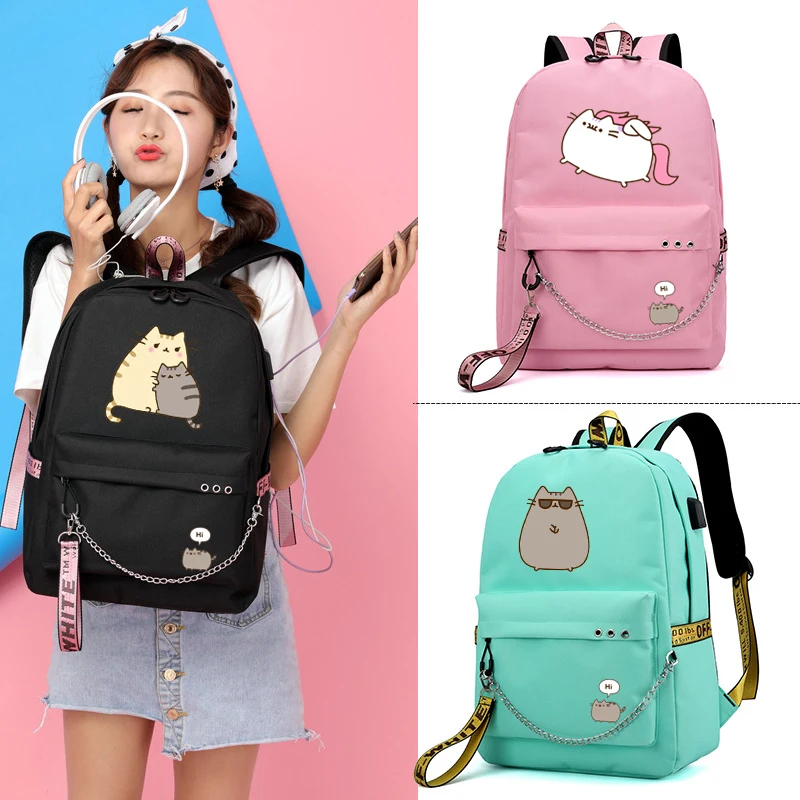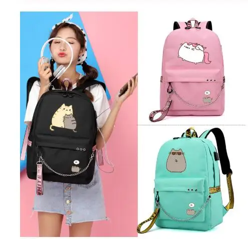 Милый жирный кот рюкзаки для девочек обратно в школу плечи рюкзак Usb зарядка холщовая дорожная сумка подростковые сумки для ноутбука