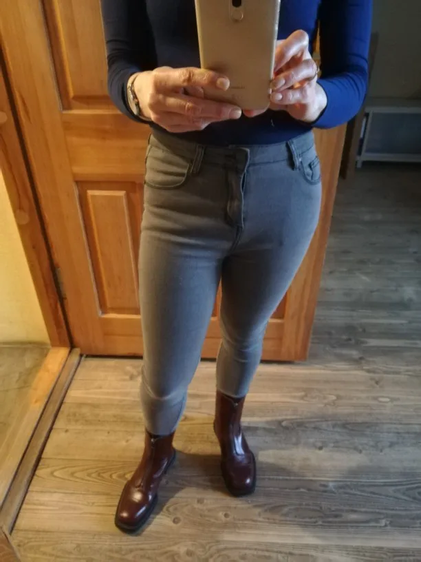 Любимые джинсы, уже вторые заказываю. Красивый тёмно-серый цвет и хорошее качество - таскала "и в хвост и в гриву" и прожили дольше всех что брала с АлиЭкспресс. Думаю и ещё закажу.