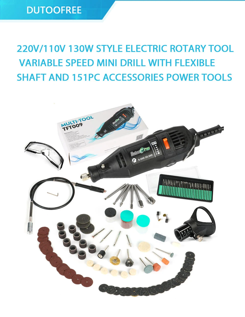 Электрический вращающийся инструмент 130 Вт в стиле Dremel, мини-дрель с регулируемой скоростью и гибким валом, 151 шт. аксессуаров, электроинструменты
