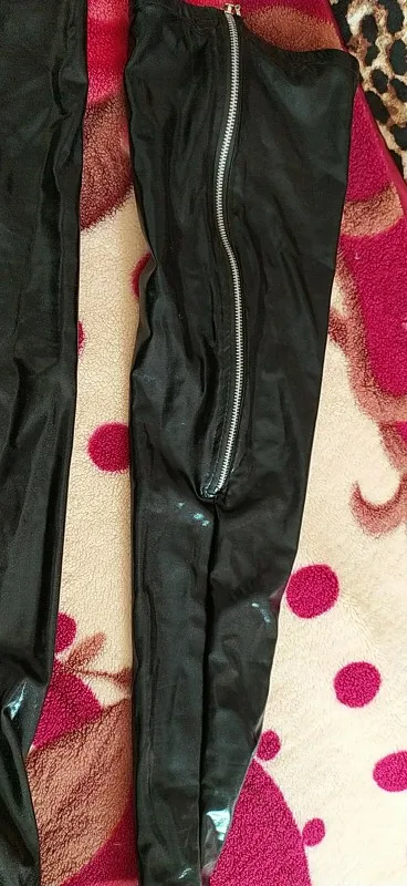 Чулки женские, с молнией сзади, силиконовые, черные, кожаные чулки