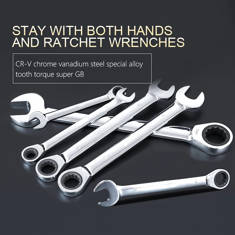 Комбинированные Гаечные ключи с трещоткой 8-32 мм, цельные ключи, зубчатые кольца двусторонний гаечный ключ, ручной ремонт автомобилей инструмент диагностики