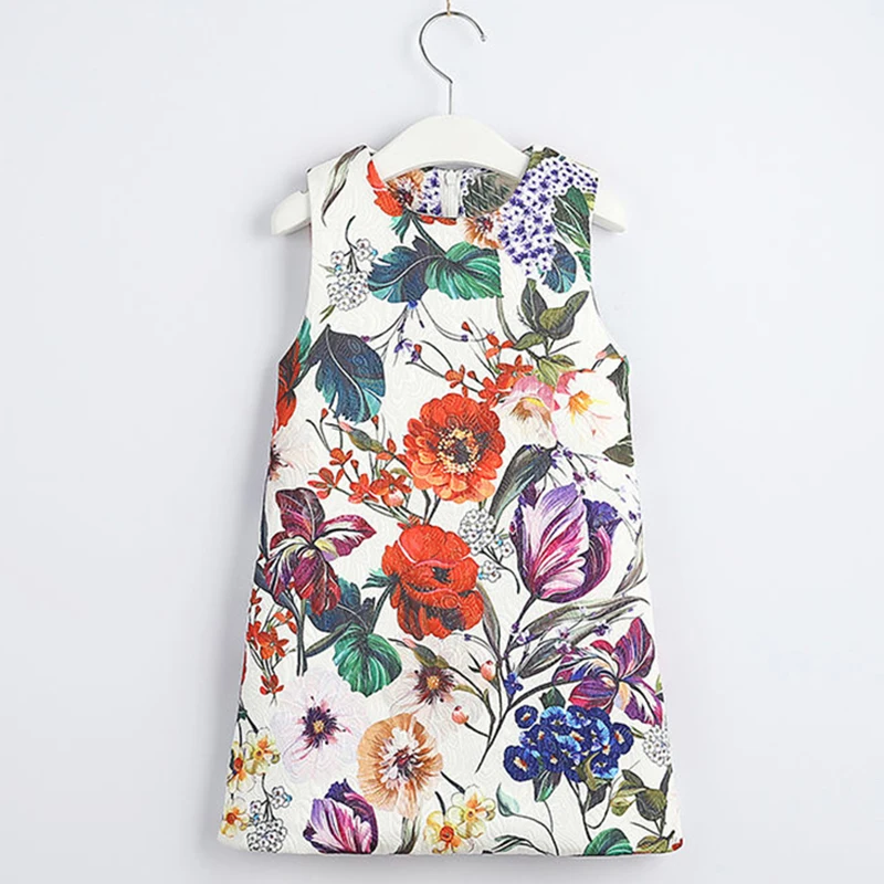 Menoea для девушек платье 2020 в европейском и американском стиле Стиль платья для маленьких девочек без рукавов с цветочным принтом для 3-8year, одежда, платье