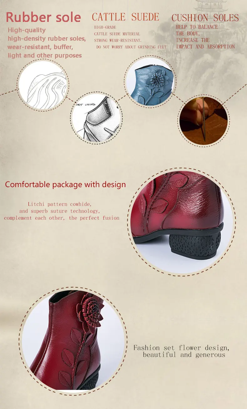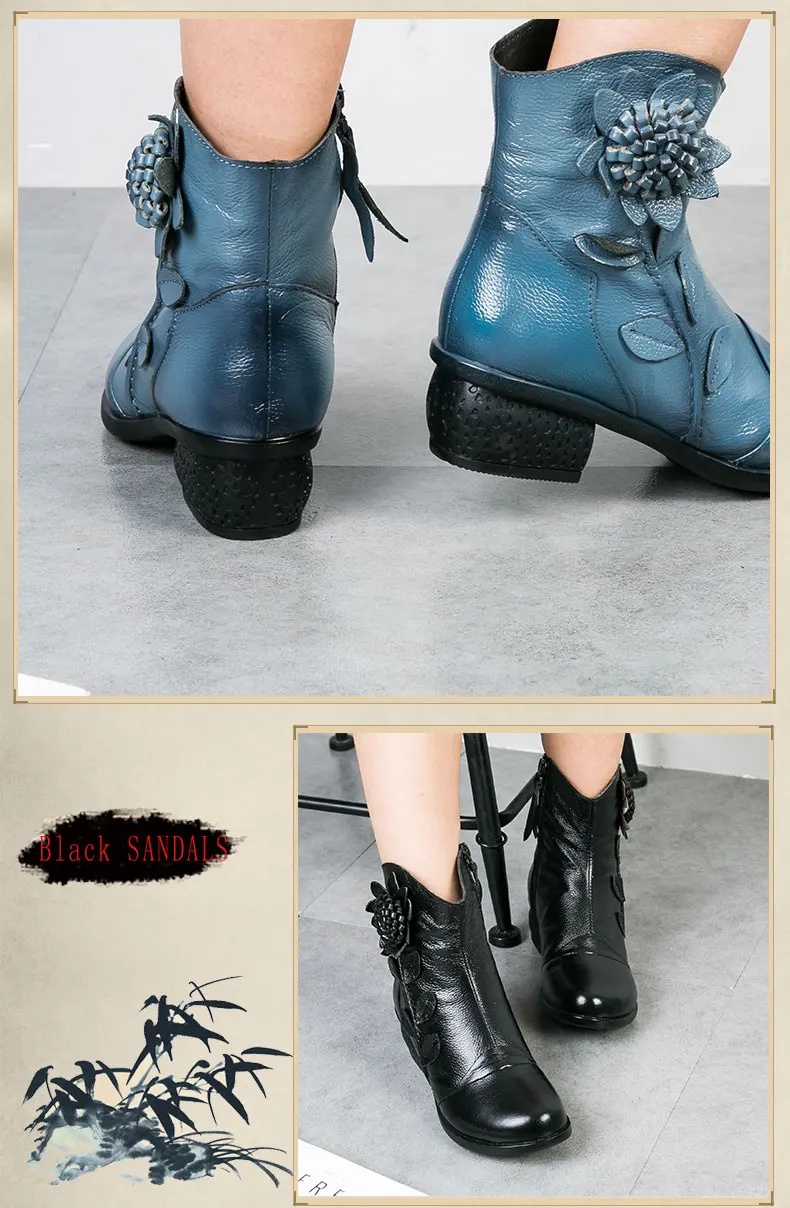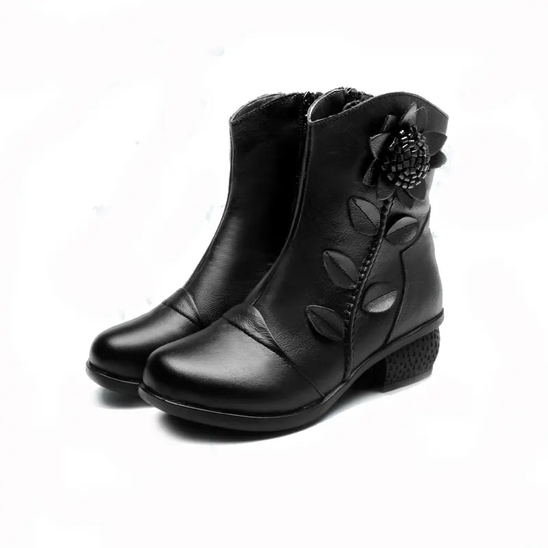 Женские ботинки изготовленные вручную женские винтажные ботинки из натуральной кожи на низком каблуке высококачественная обувь с круглым носком женская модная зимняя обувь