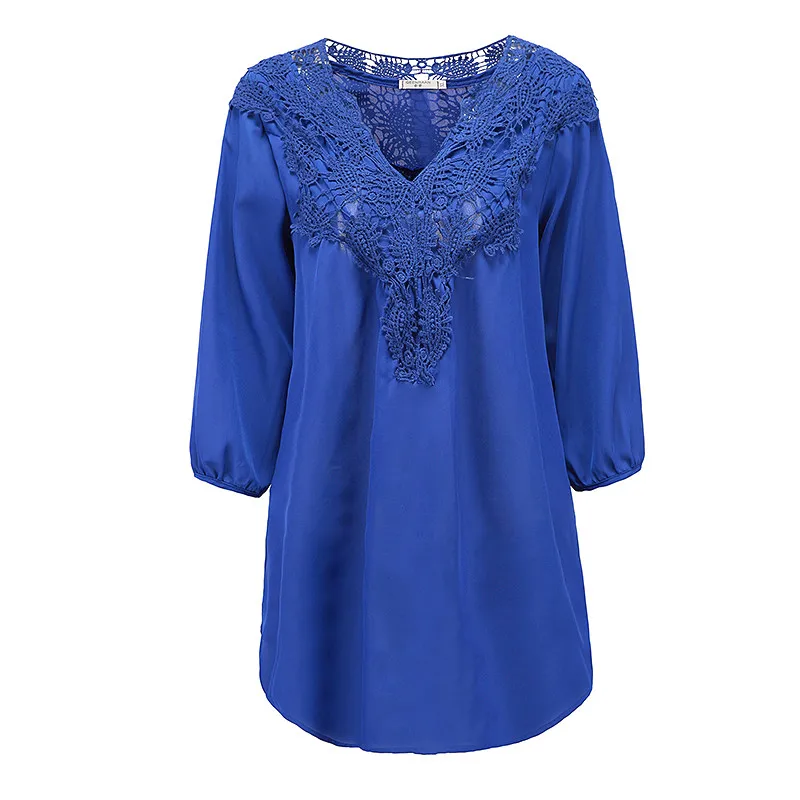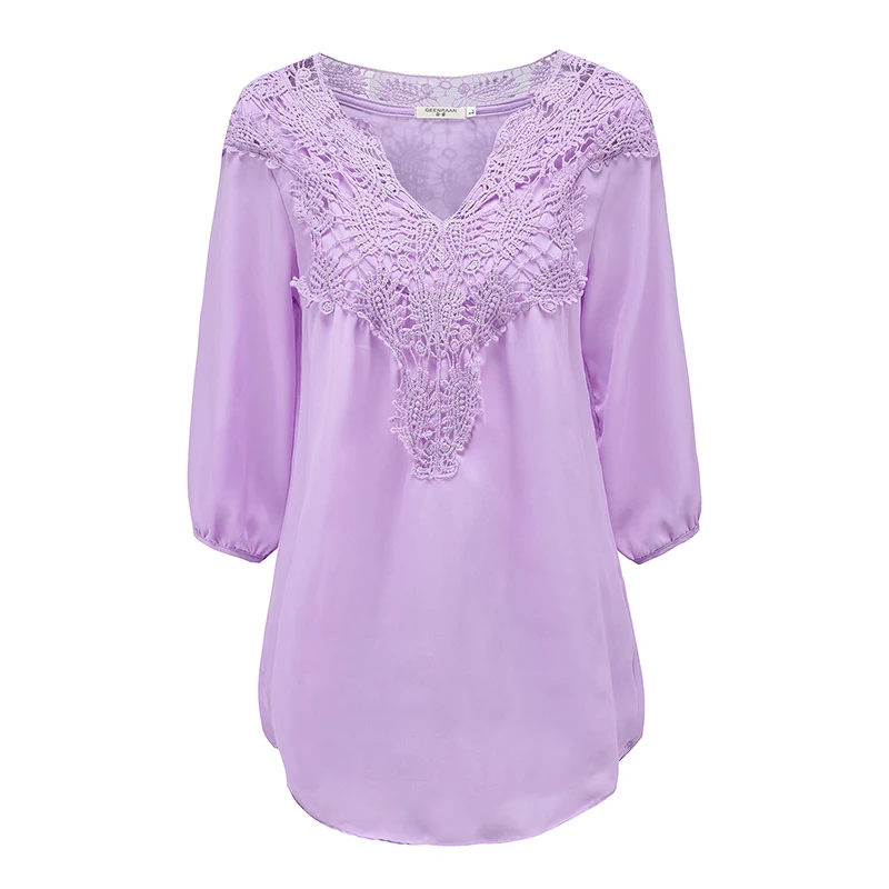 Женская шифоновая блузка, свободная блузка с V-образным вырезом, рукавом три четверти, весна-лето 2019