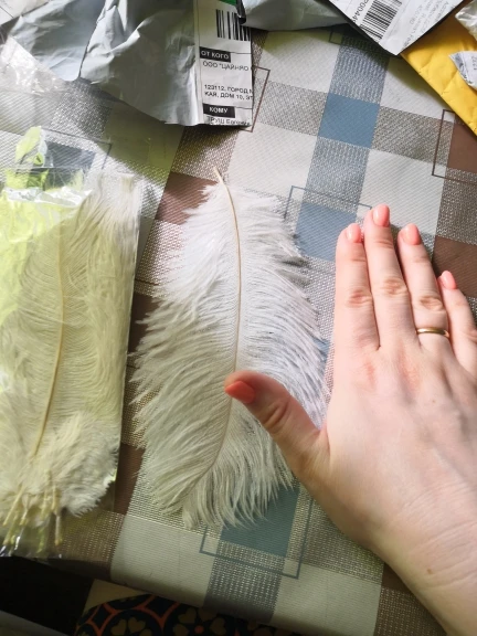Здравствуйте, спасибо большое продавцу за заказ, действительно очень нежные и классные перья.Я очень довольна и прям тащусь от них. Перья разного размера, упакованы в прозрачный и пупырчатый пакетик. Заказывала 14.03 пришли 08.04. Буду заказывать ещё.