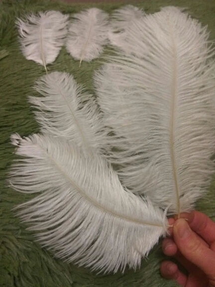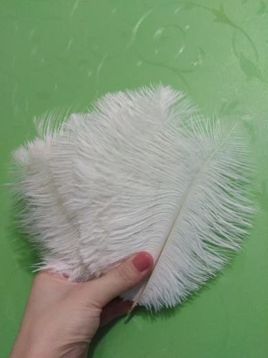 Белые более менее одной длинны и ширины. Божественные! Нежные. Очень красивые. Купила 5 расцветок за $4.55. Размер как и заявлено 15-20 см. Перья разной длины. Доставка с другими товарами объединена в 1 посылку, очень быстро новой почтой. Куда применять не знаю, но они такие красивые. Рекомендую к покупке.
