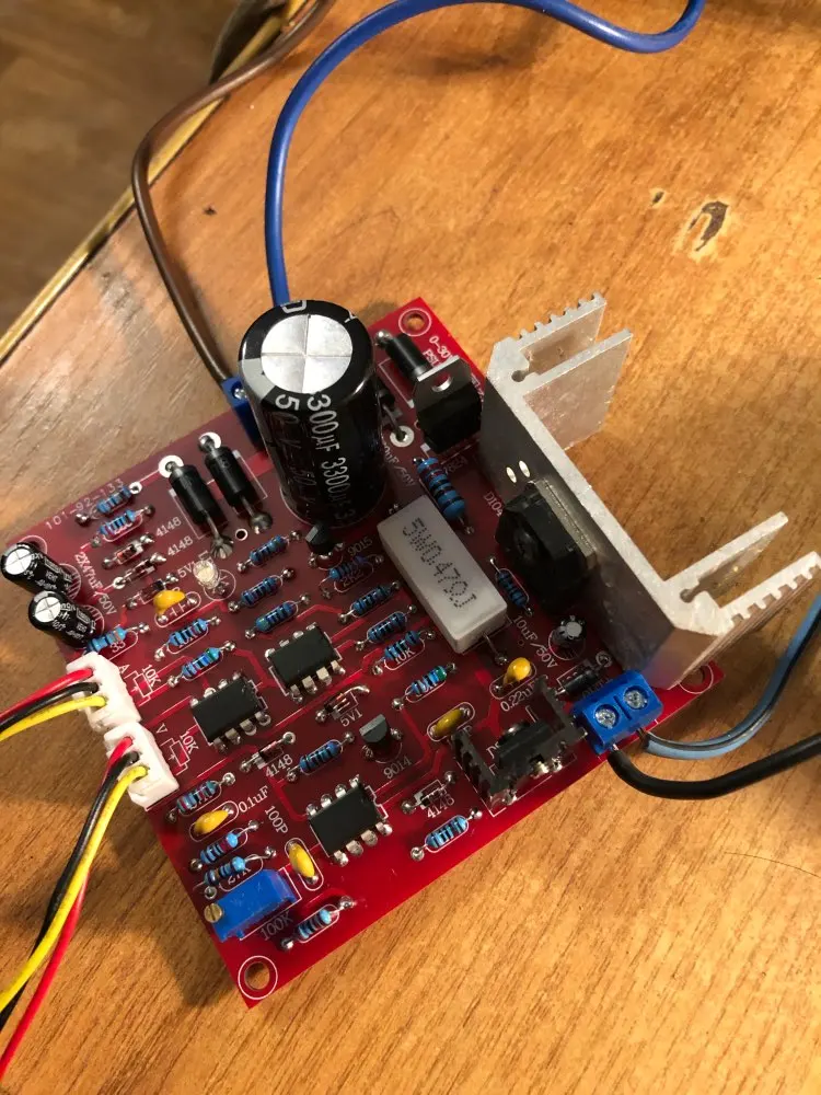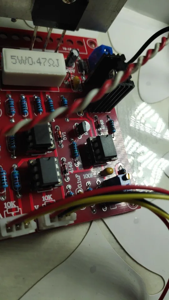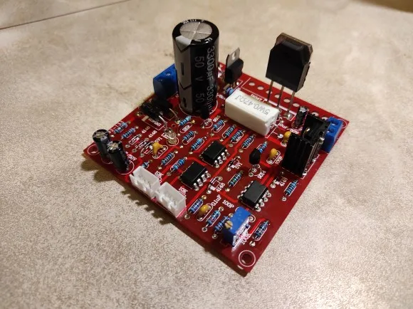 комплект дошел достаточно быстро, деталей хватило, мелочёвка какая то осталась, но вот с запуском как то не заладилось, первое не отдавал ток больше примерно 350 мА, виновник оказался мощный резистор 0,47 Ом, по факту он оказался около 5 Ом, заменил ток стал выдавать но теперь ни как не удавалось выставить "ноль" на выходе подстроечником, т.е. реакции на него совсем небыло, заменил операционники на MC34071P купленные ранее, и всё равно ноль не выставлялся, пошел в магаз и купил TL081и наконец то заработало как надо и ноль выставился. похоже операционники ложат любое мало мальско подходящее гавно, при этом коплектные операционники вообще не имели маркировки а купленные ранее MC34071P вполне похожи на оригинал но факт остается фактом, перетыкал все шесть операционников с али и ни с одиним не заработало выставление нуля. погляжу как будет вести себя дальше.