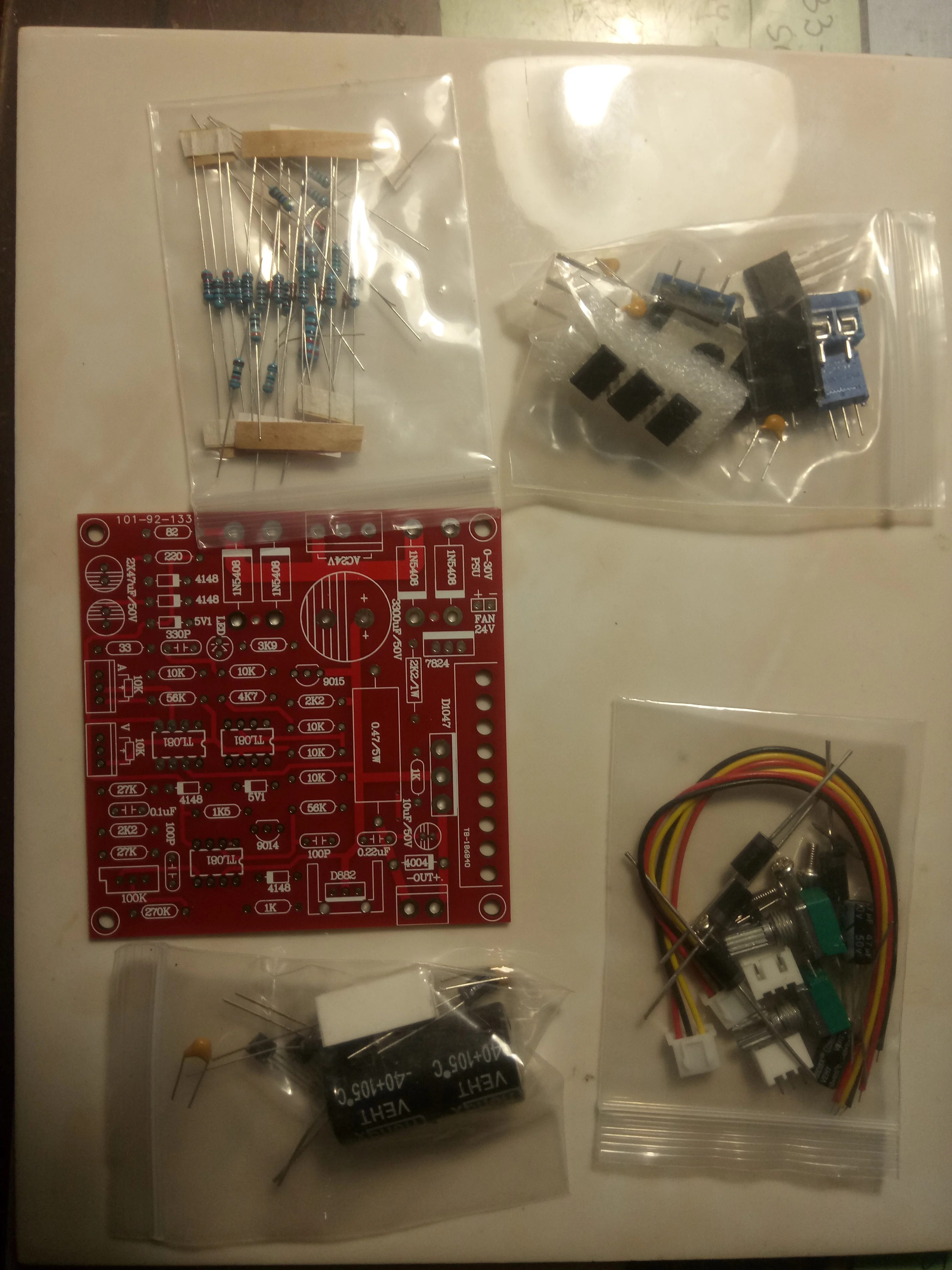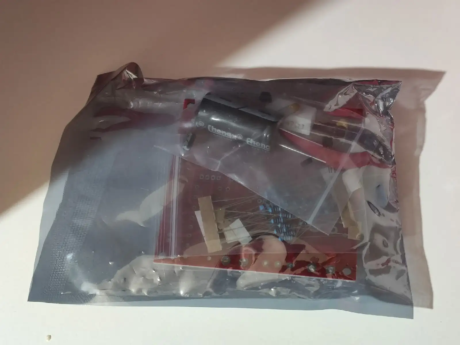 В целом всё рабочее, дошло за 20 дней. Но! Из всего набора качественная только плата, а все остальные детали низкого качества. Все детали прямо вырывает из пальцем магнитом, что резисторы, что транзисторы, стало быть содержание меди в них минимальное, не говоря уже о внешнем виде - это не есть хорошо. Операционники так вообще левые, любые опознавательные знаки отсутствуют, хотя бы про ключ не забыли. Возможно в более дорогом наборе будут более качественные детали, но чего-то большего ожидать не стоит.