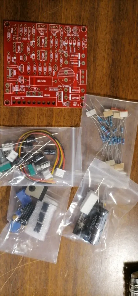 когда собирали были лишние детали но не хватало 2 нужных деталей. впринципе добавили собрали всё работает. спасибо продавцу. регулировка напряжения и силы тока работает. пробовал на лампочку 12В 21вт резко начал греться самый большой транзистор и мы прекратили.