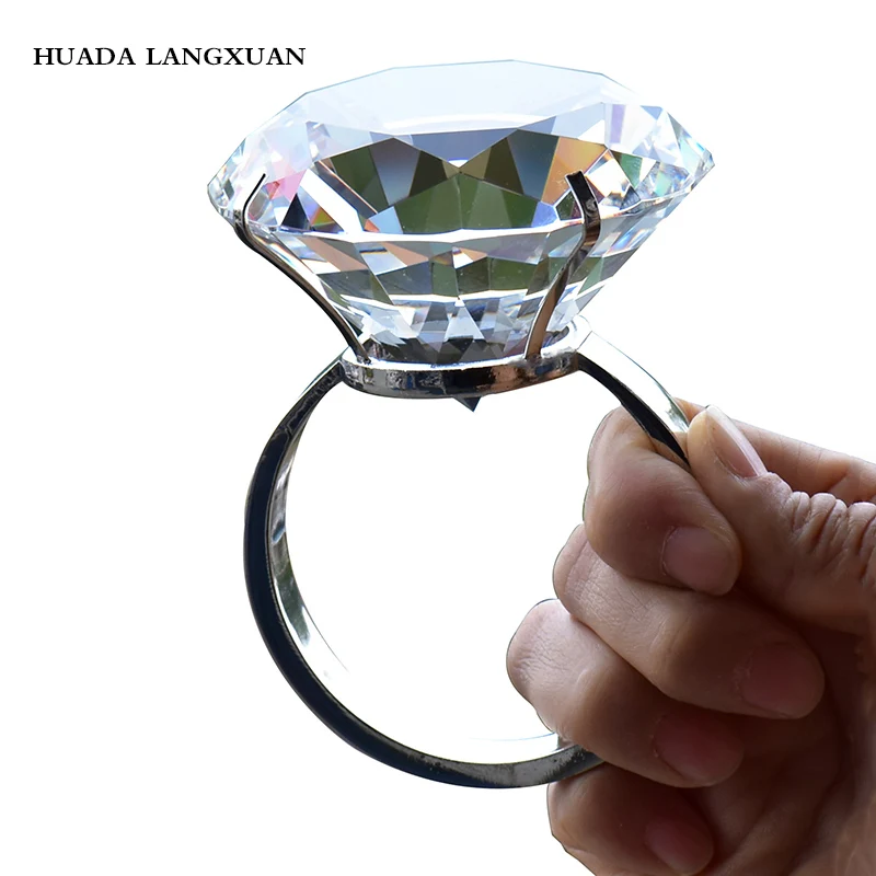 Свадебное украшение 8 см, Кристальное стекло, большое кольцо с бриллиантом, романтическое предложение, свадебный реквизит, домашние украшения, праздничные подарки, сувениры