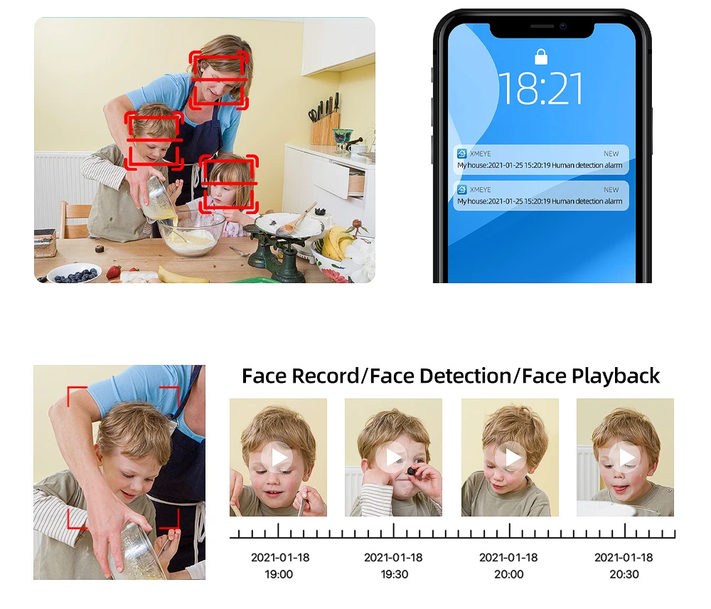 Обнаружение лица, воспроизведение лица и запись лица; Быстрое снятие изображений лица и быстрое воспроизведение видео лица; Распознавание лица: автоматическое снятие изображений лица; Интеллектуальное воспроизведение лица: интеллектуальное воспроизведение видео лица, экономия времени, не пропустите все детали.