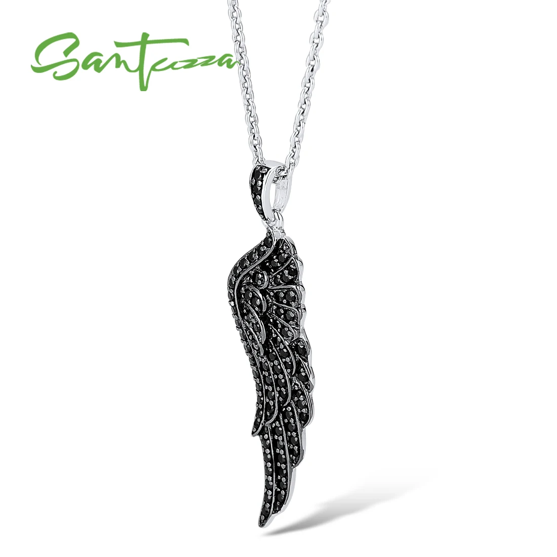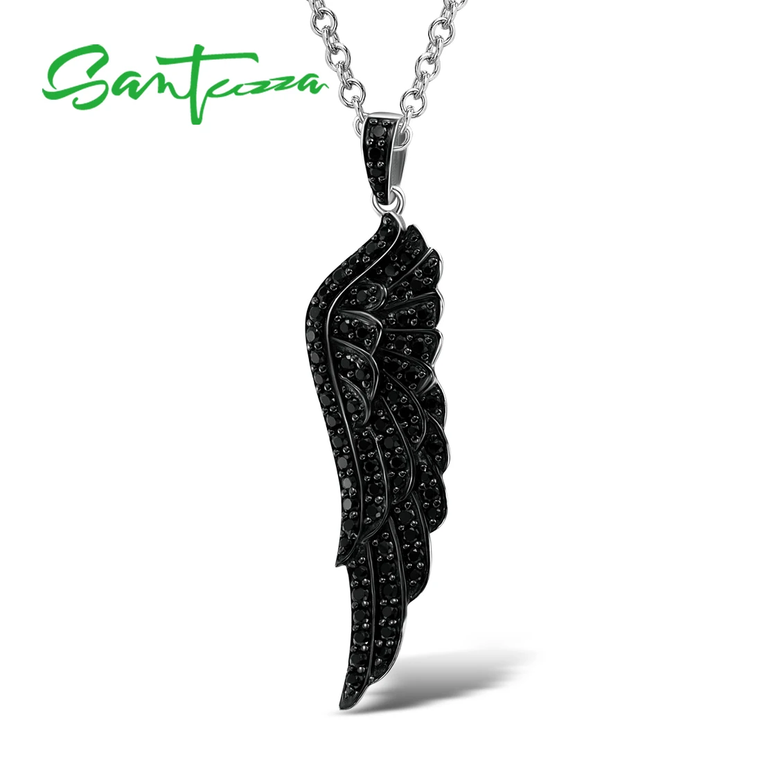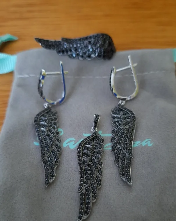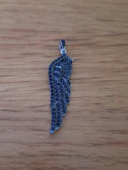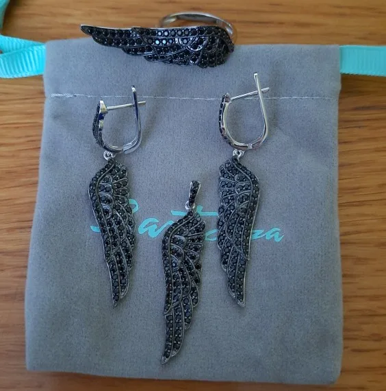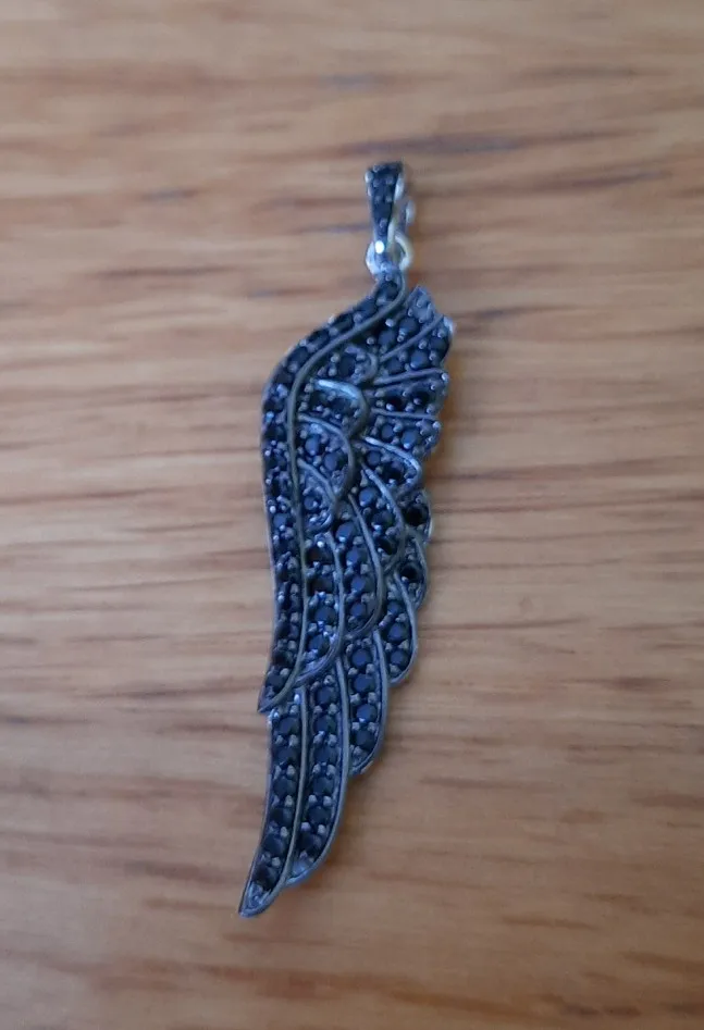 Женская подвеска из серебра 100% пробы с черной шпинелью и крыльями ангела
