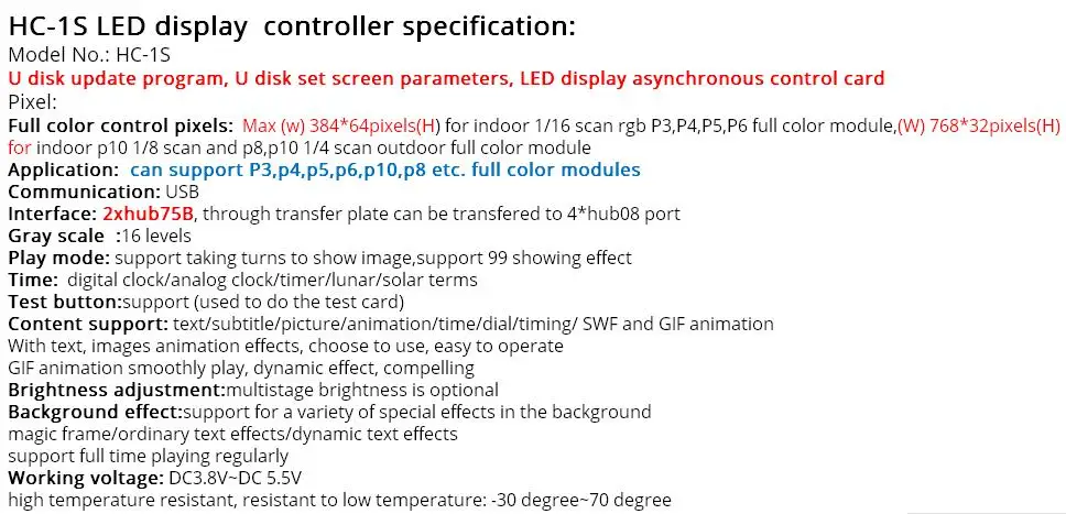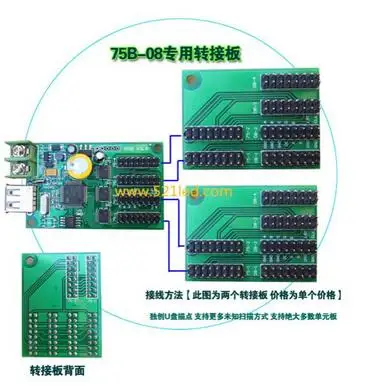 HC-1S USB-порт, полноцветная светодиодная карта управления, U-диск, асинхронный Светодиодный контроллер с 2 * портами hub75b для дисплея p3,p4,p5,p6,p8,p10