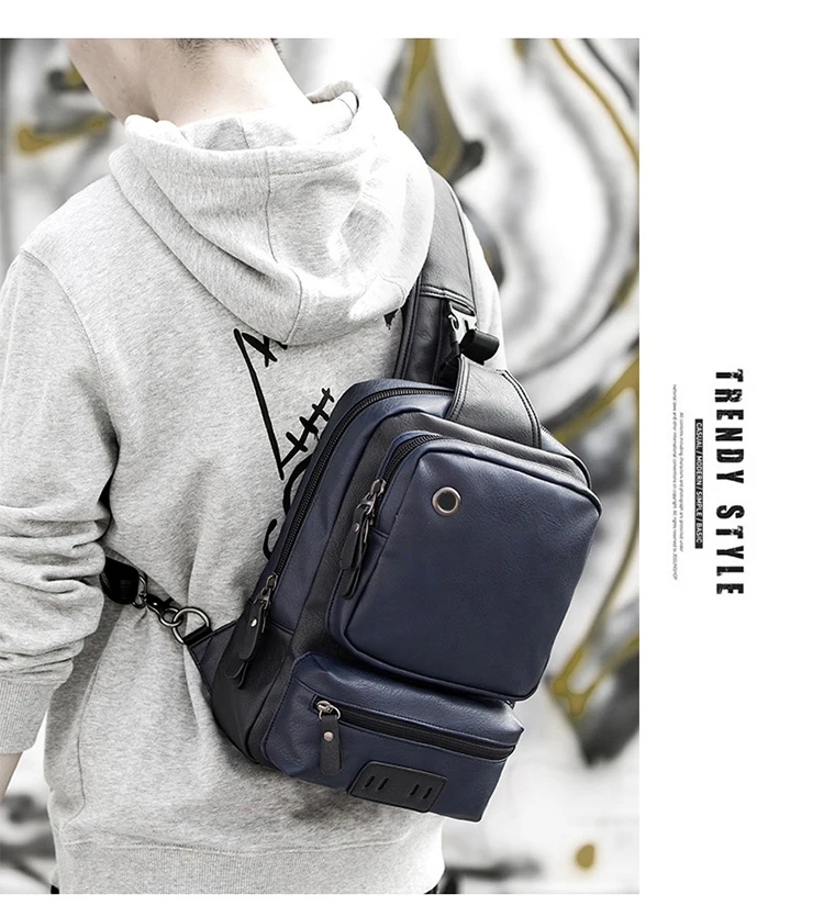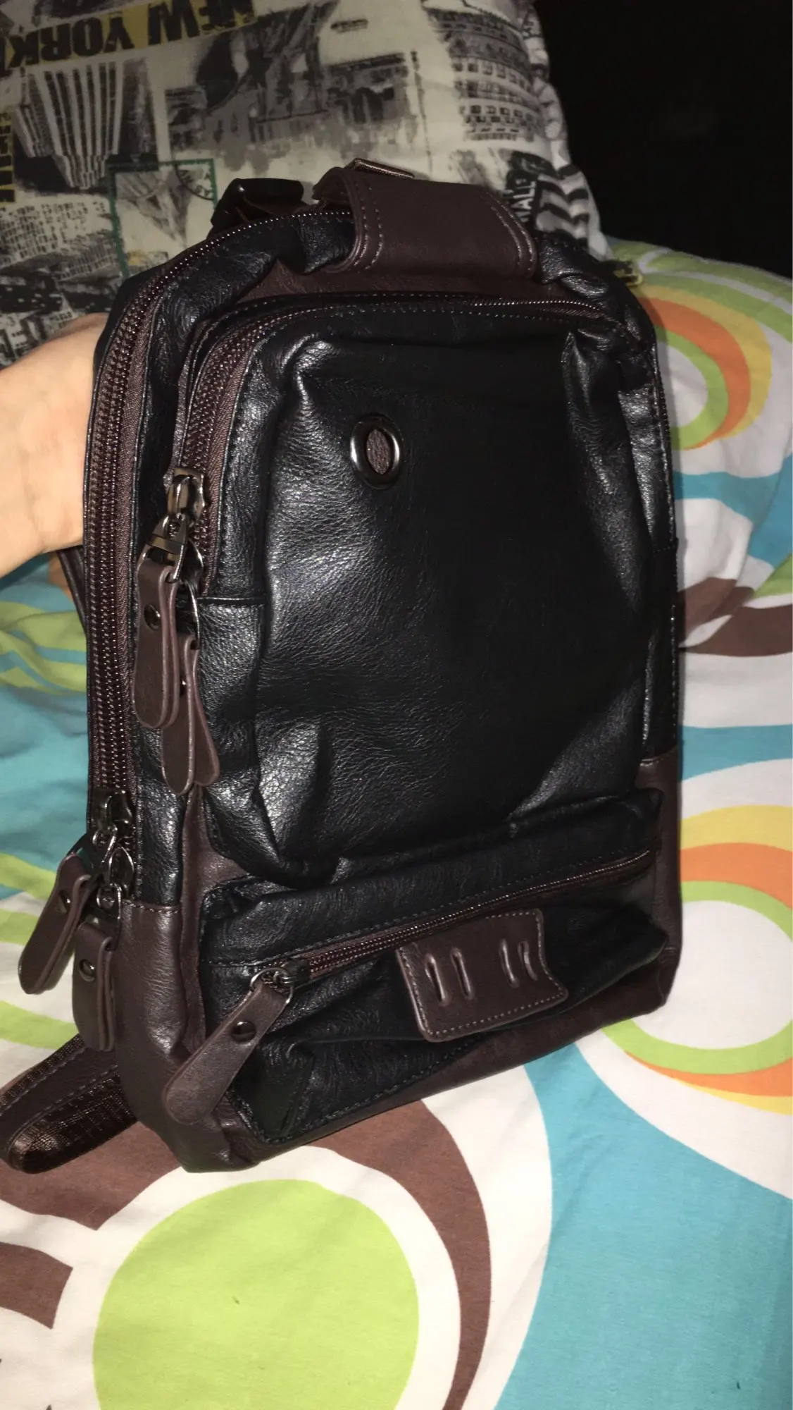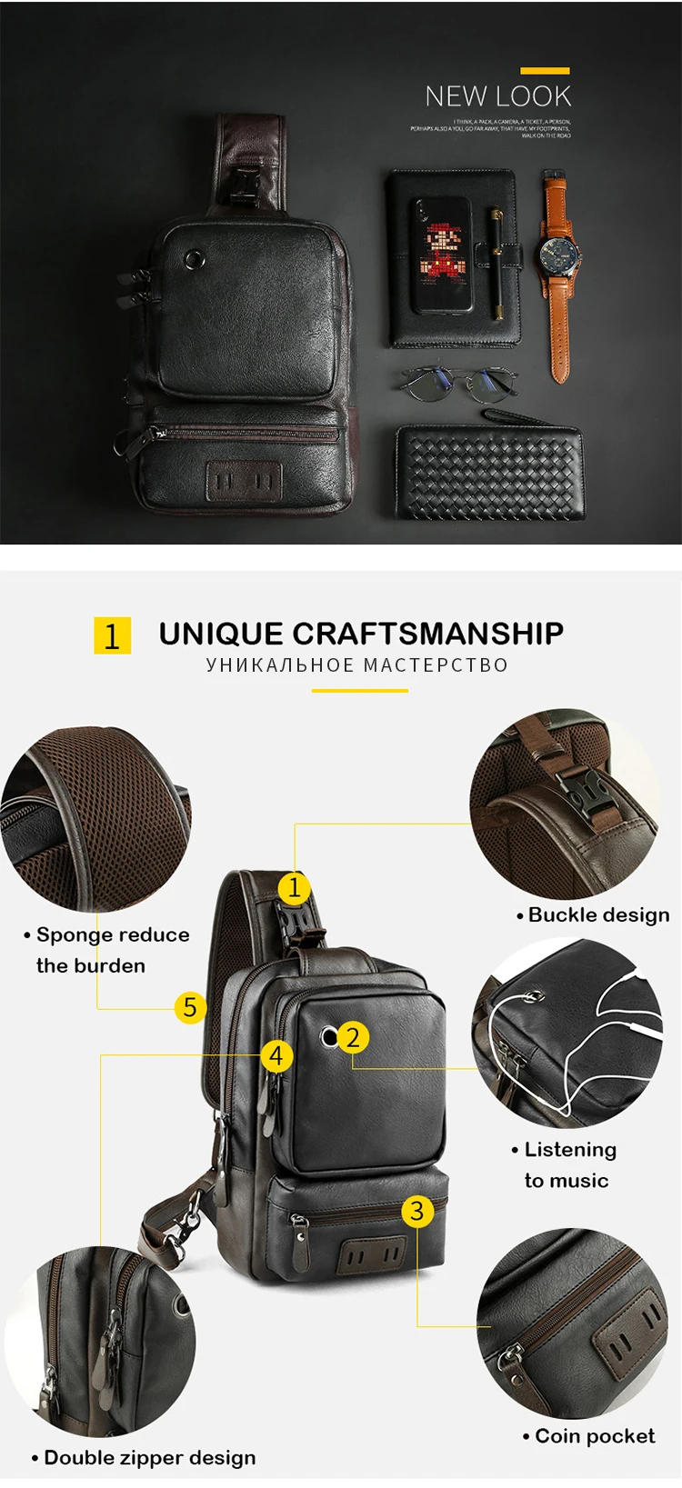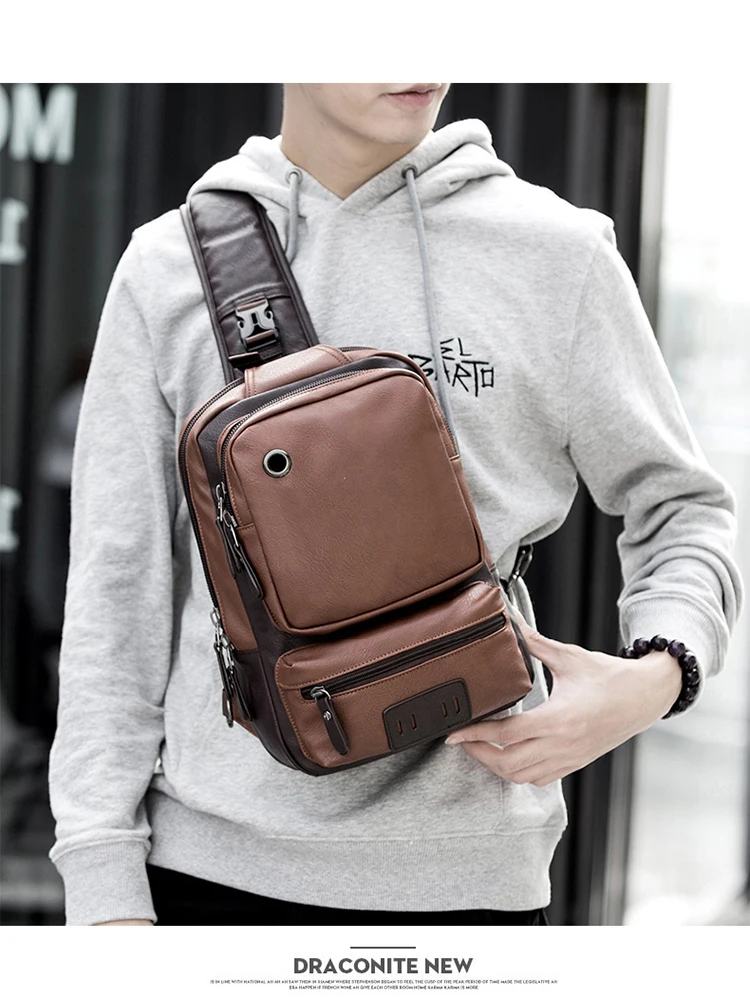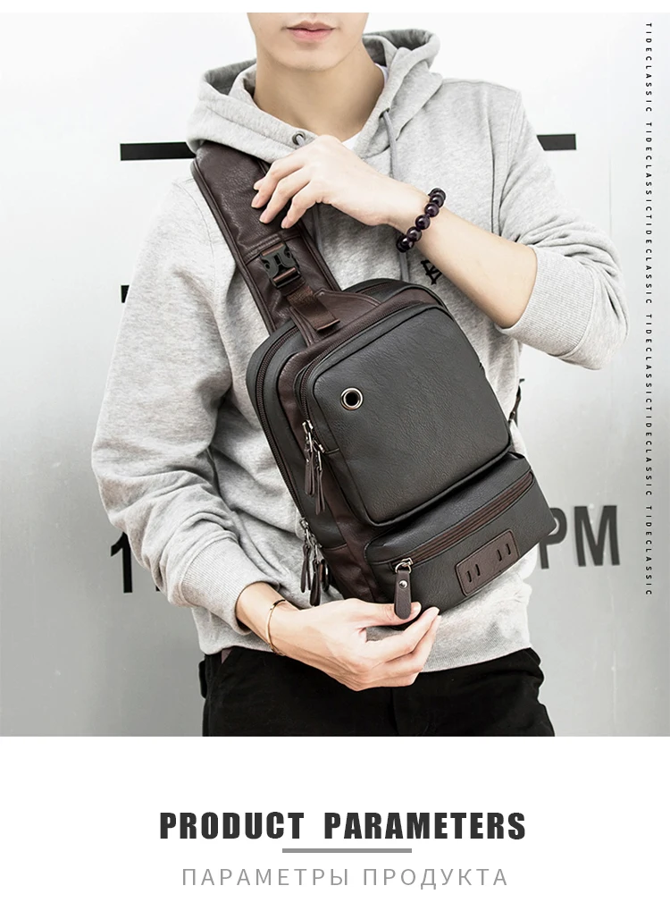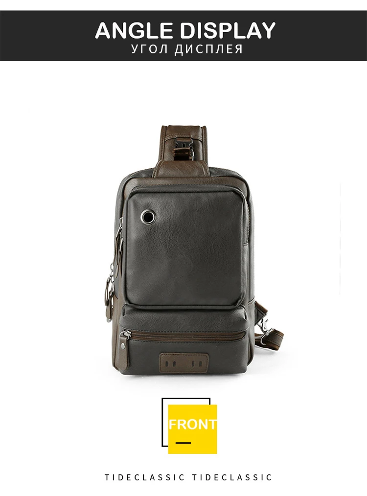 Рюкзак мужской кожаный, с отверстием для наушников, водонепроницаемый