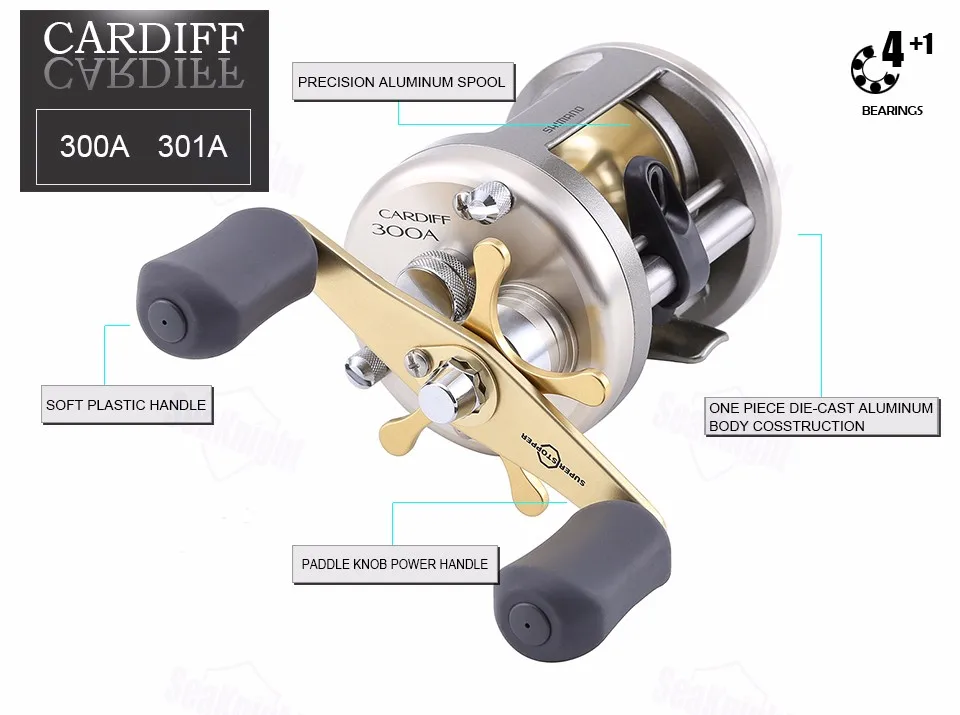Катушка для спиннинга Shimano Cardiff, 4 + 1BB, 5,8: 1, для морской рыбалки, 200A, 201A, 300A, 301A, 400A, 401A