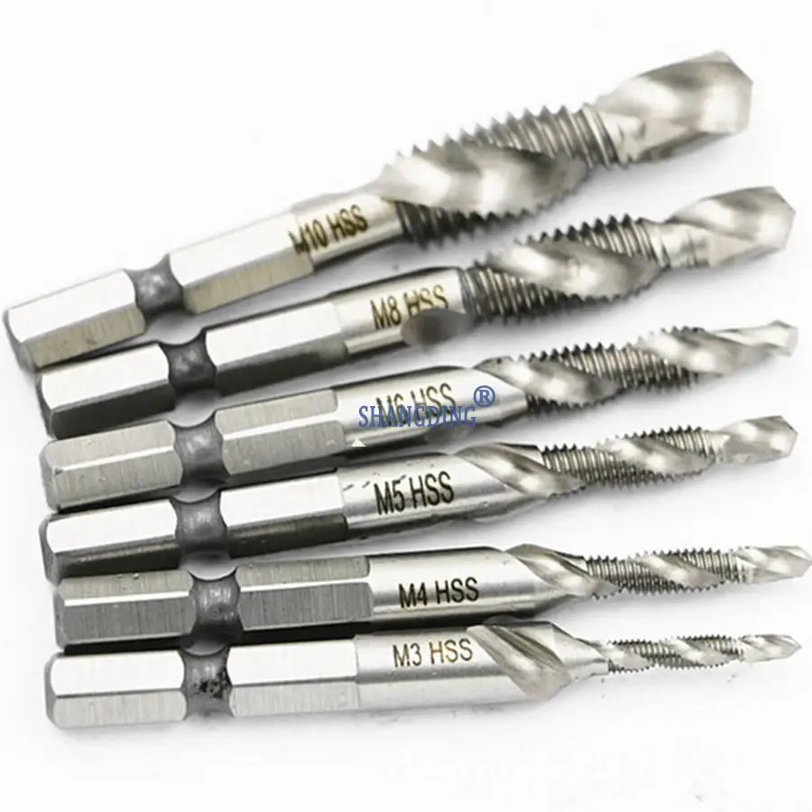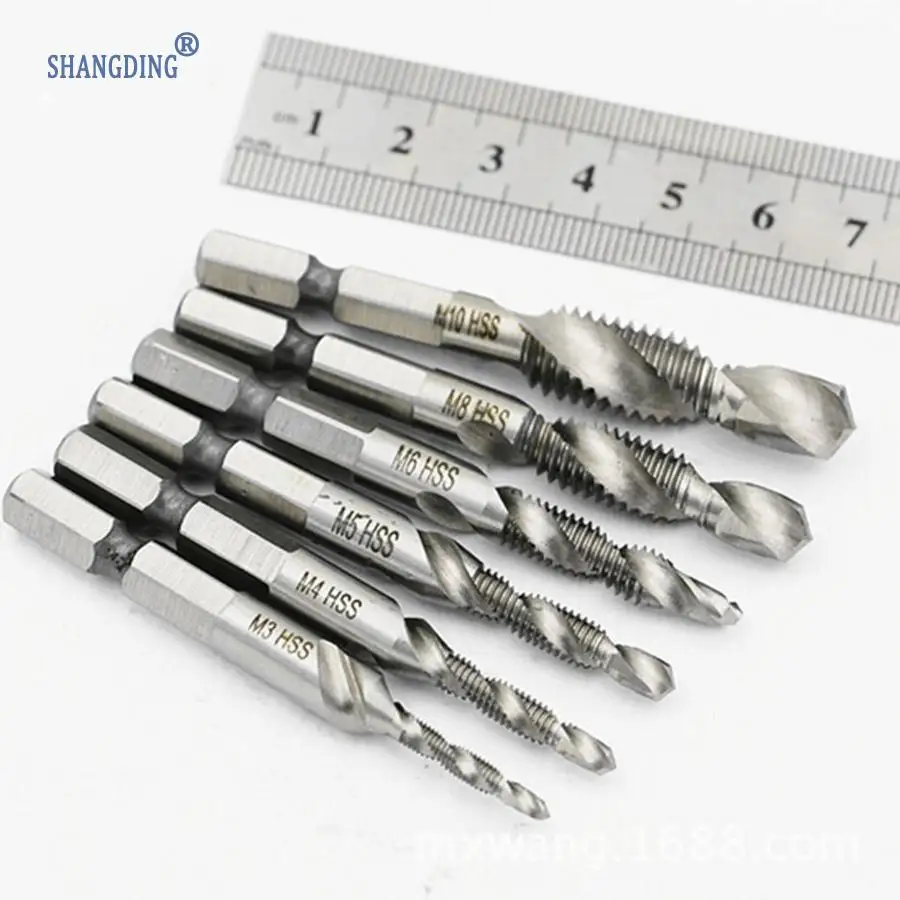 6 шт. M3-M10 композитный кран сверло Резьба спиральный винт 14 ''шестигранный HSS