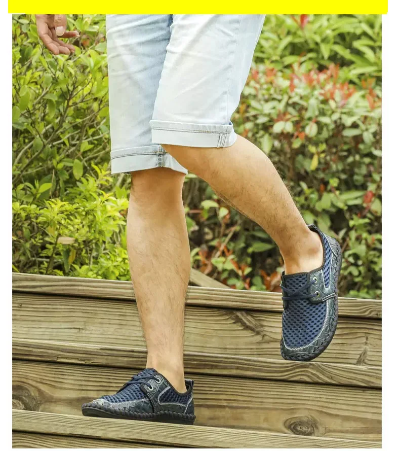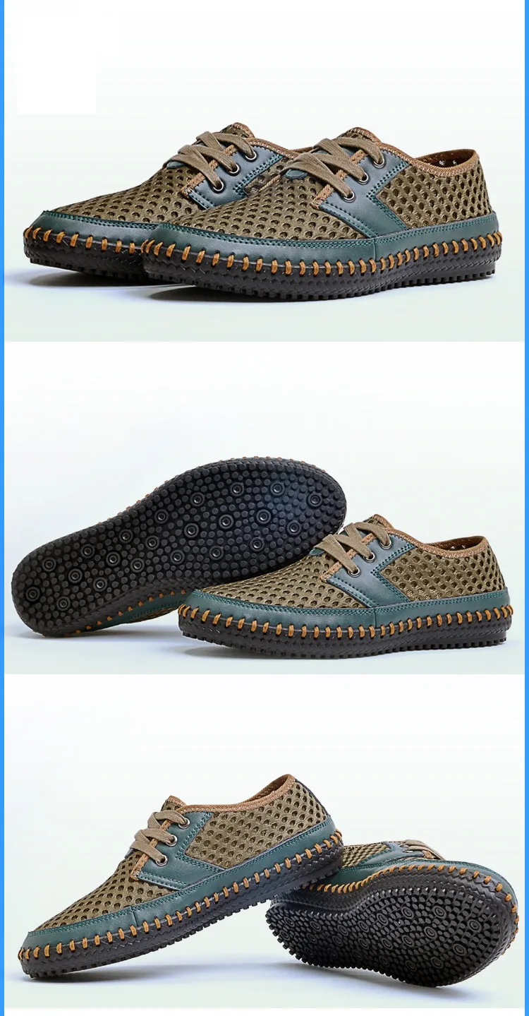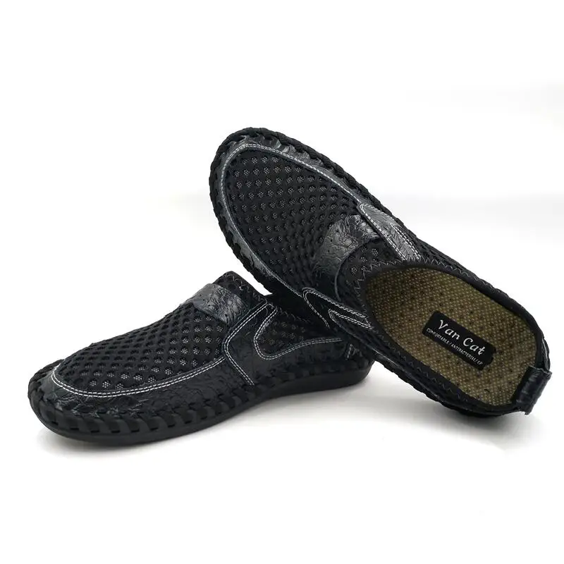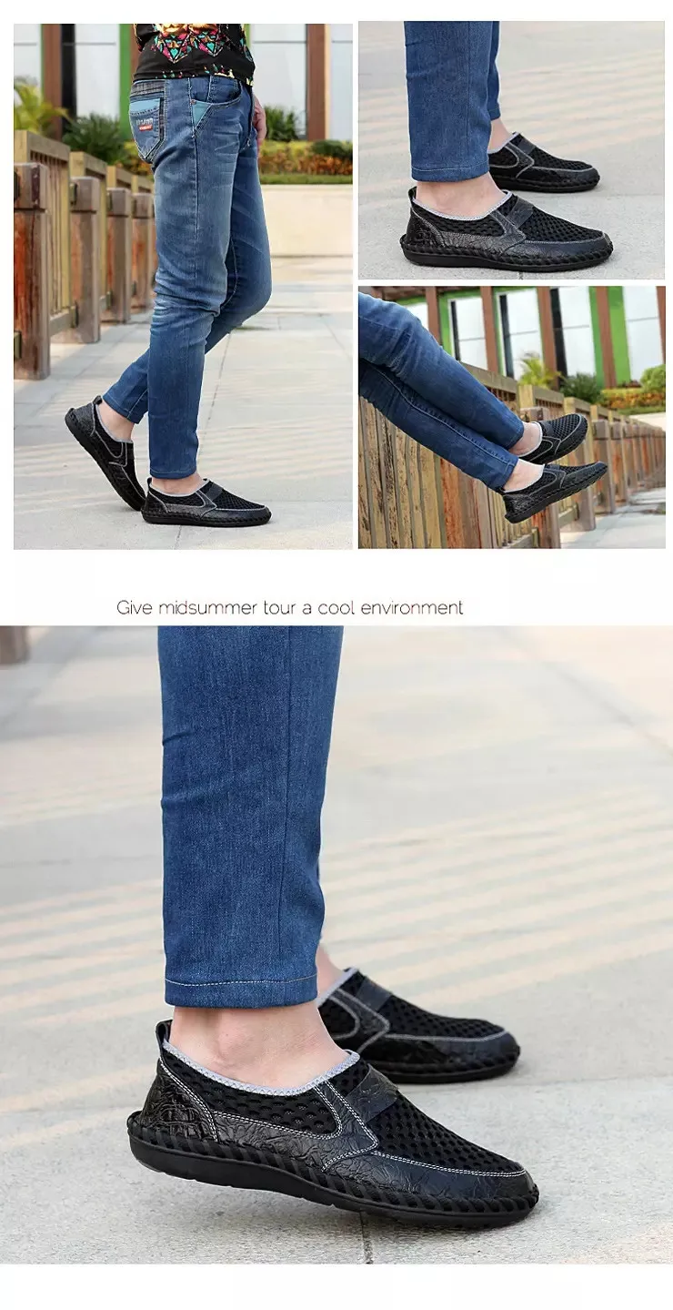Мужская сетчатая обувь, из натуральной кожи, без шнуровки, мягкая, удобная, летняя, 2019