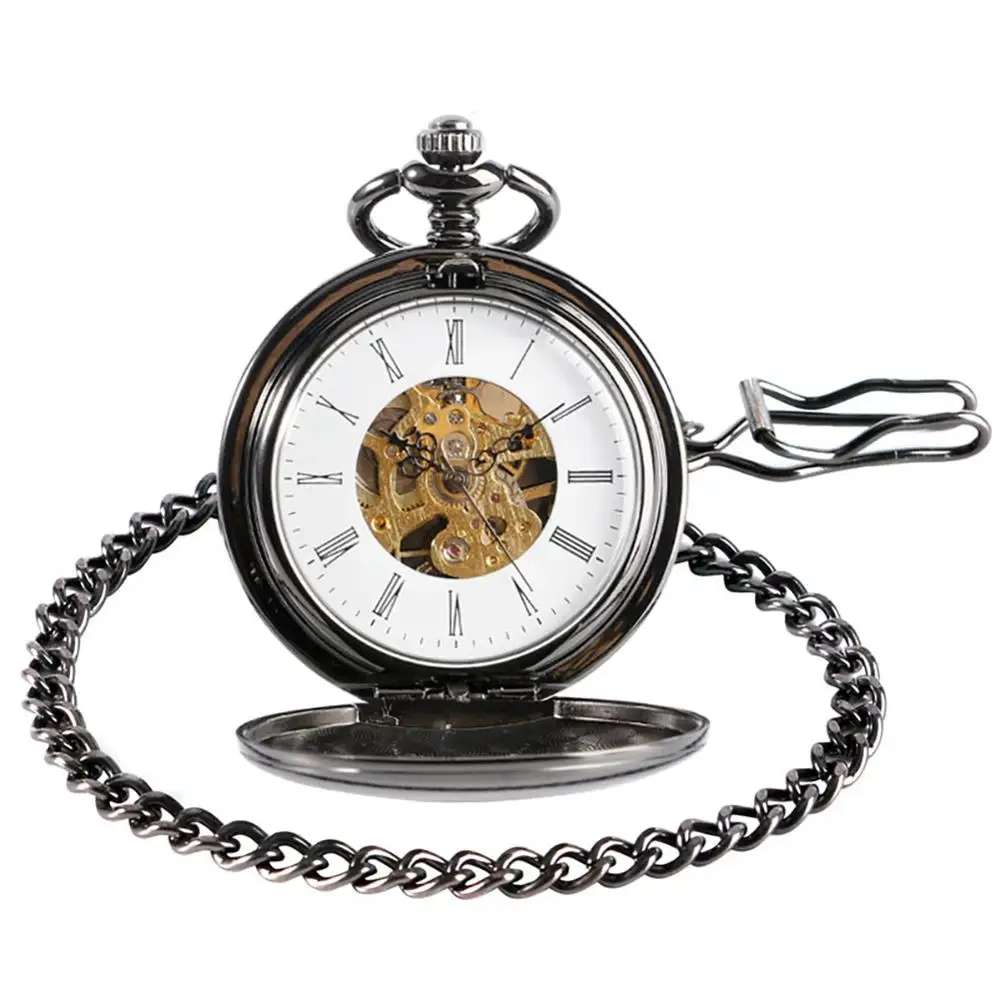 Особенности продукта: 100% абсолютно новый и качественный Прозрачный Скелет Гладкой двойной чехол Дизайн Механизм: ручная намотка механическая Диаметр: около 5,0 см. Толщина: около 1,4 см Общая длина цепочки: около 30 см Содержание пакета: 1 х карманные часы 1 х цепи