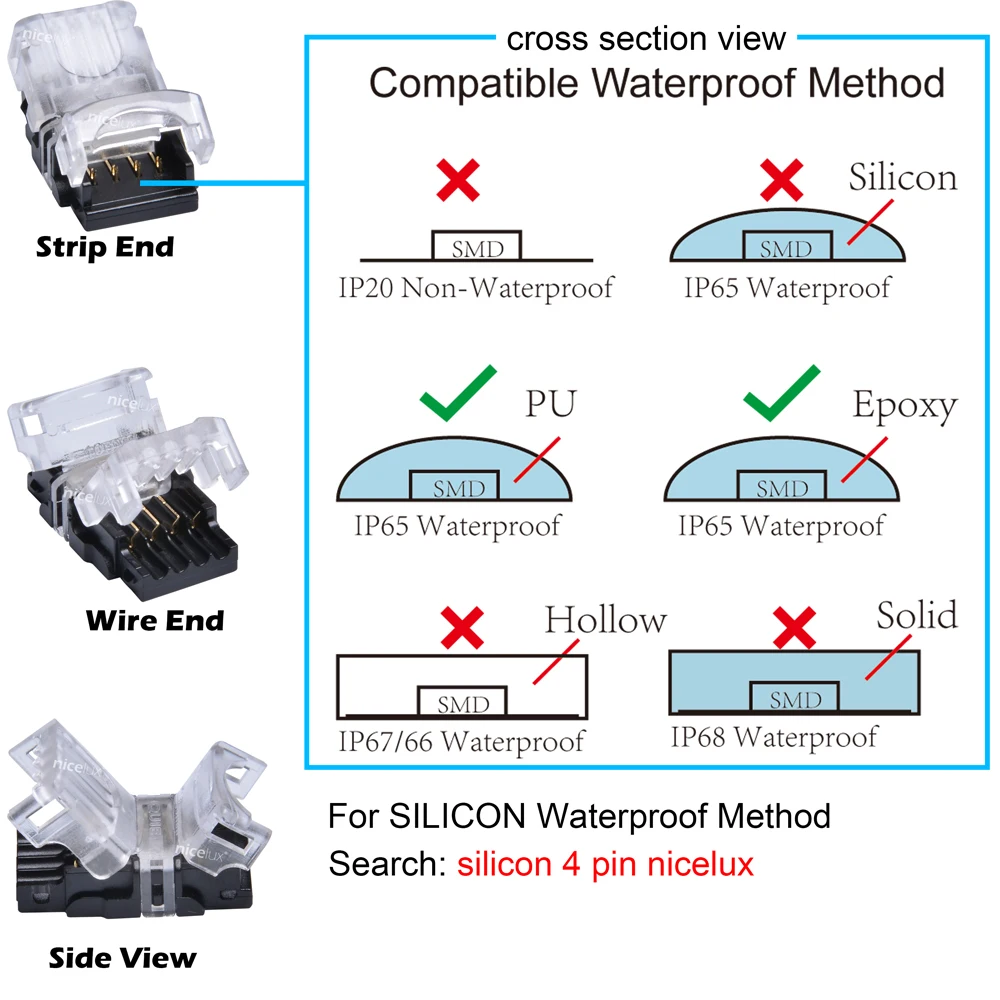 10 шт. RGB Светодиодная лента разъем 4 Pin 5050, 10 мм цветной светодиодный ленточный светильник разъем для водонепроницаемого IP65 полосы для использования проводов.