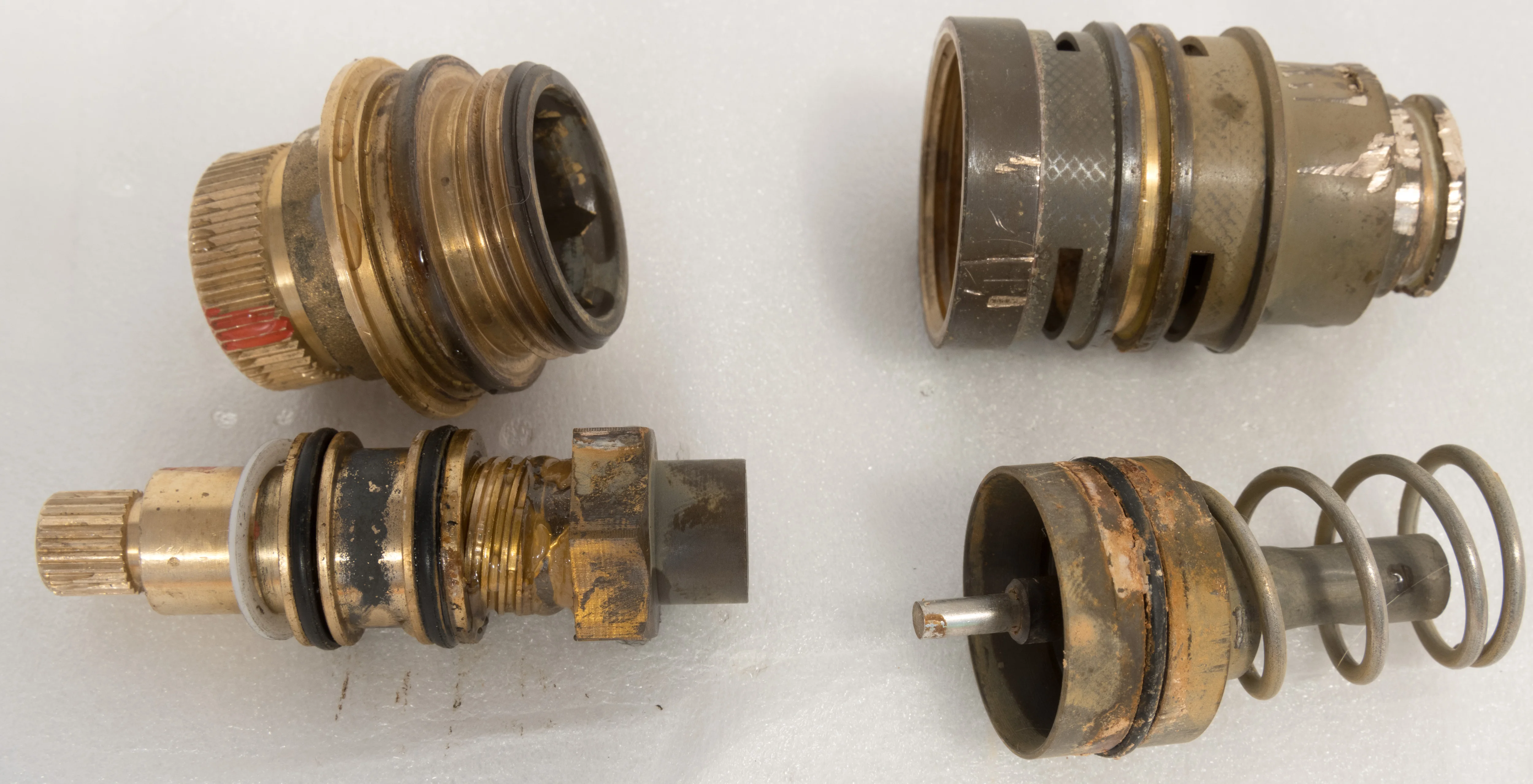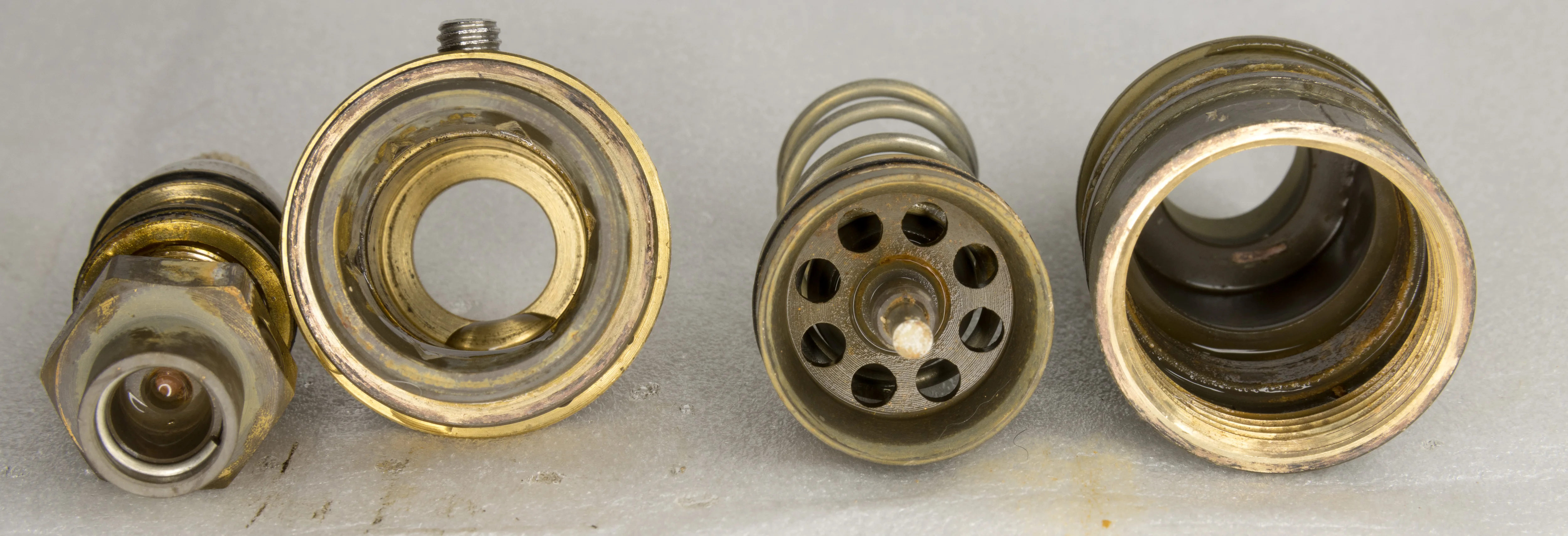 2020.09.13 Фото высокого разрешения. Старый регулятор перестал работать, проработав около 10 месяцев. Новый поначалу шумел, но потом видимо воздух из него весь вышел, и перестал шуметь. Решил старый регулятор разобрать и выяснить, почему он умер. Долго не мог понять, как он разбирается, к тому-же он закис. В конце концов применил силу и раскрутил его. Старый регулятор заклинило от отложений солей - частично сохранились даже на извлечённым поршне.Живу в Уфе, у нас тут Уральские горы карстовые - жёсткость воды такая, что можно втыкать ложку, будет стоять и не падать. В общем похоже надо купить ещё регулятор и периодически их чередовать в смесителе, свободный при этом отмачивая в лимонной кислоте или другой чистилке от накипи.