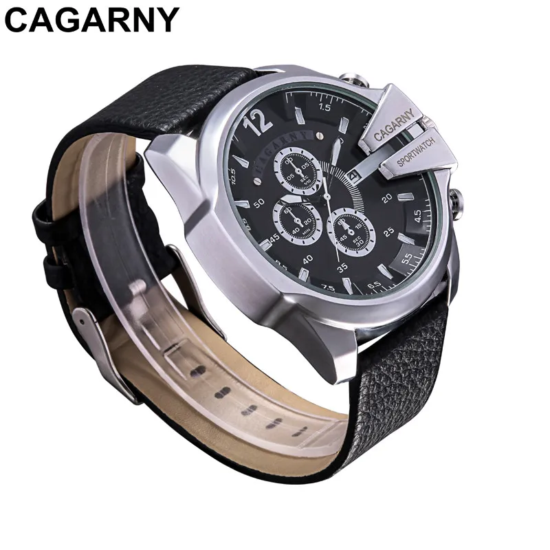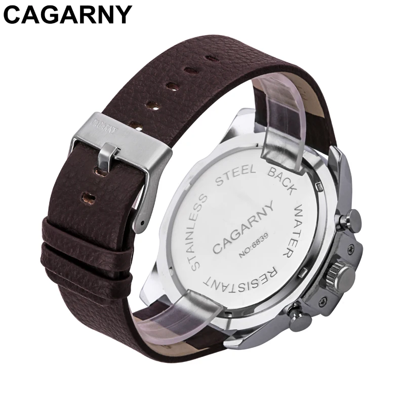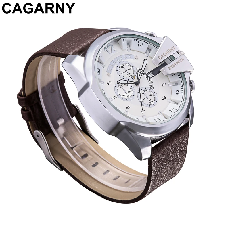 Люксовый бренд Cagarny, мужские кварцевые часы, мужские наручные часы в стиле милитари, кожаный ремешок, часы, мужские часы, Relojes Hombre, D6839, новинка