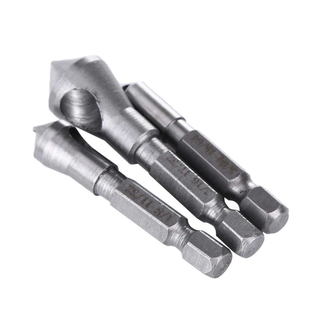 3 ШТ. HSS С Титановым Покрытием Потайной и Снятия Заусенцев Сверло Набор Ручного Инструмента Для Резки Металла Древесины Сверла