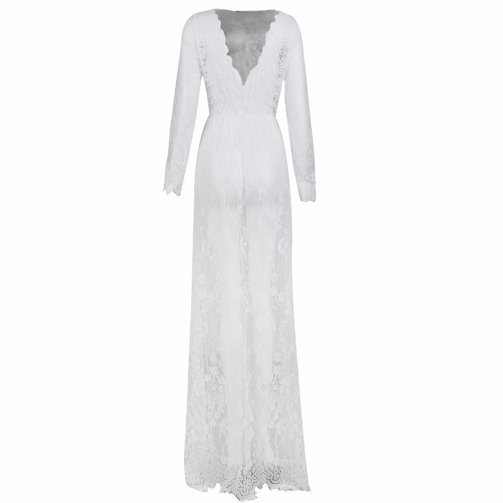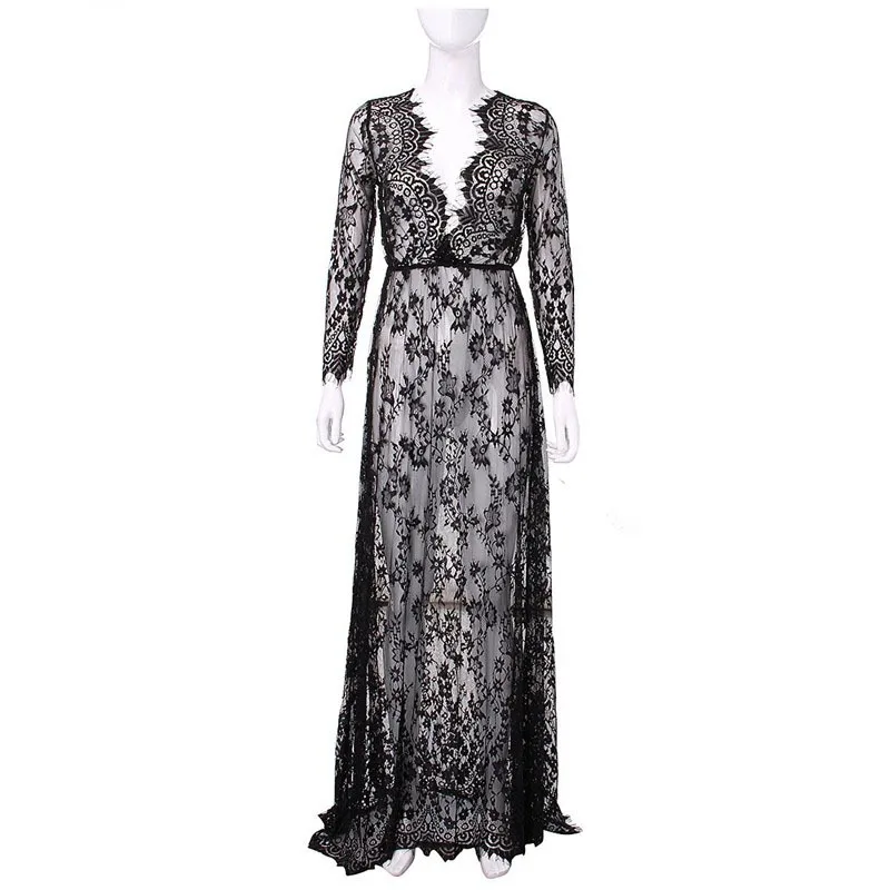 Женская кружевная ночная рубашка Lisacmvpnel с длинным рукавом и глубоким v-образным вырезом