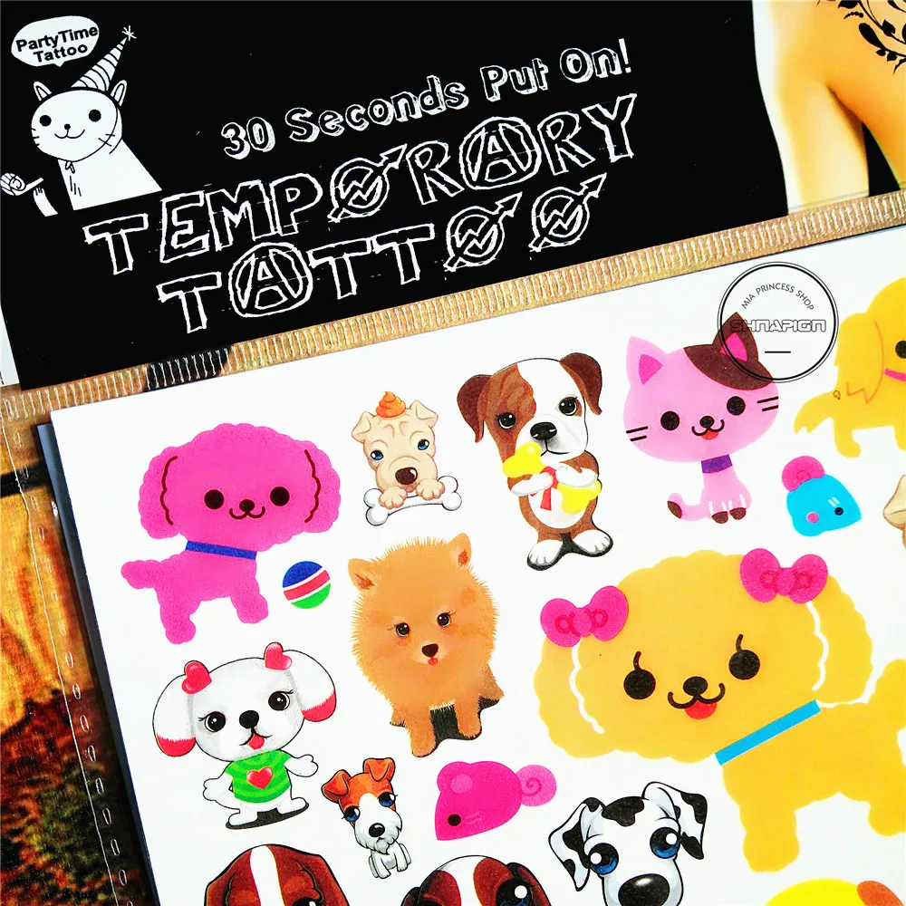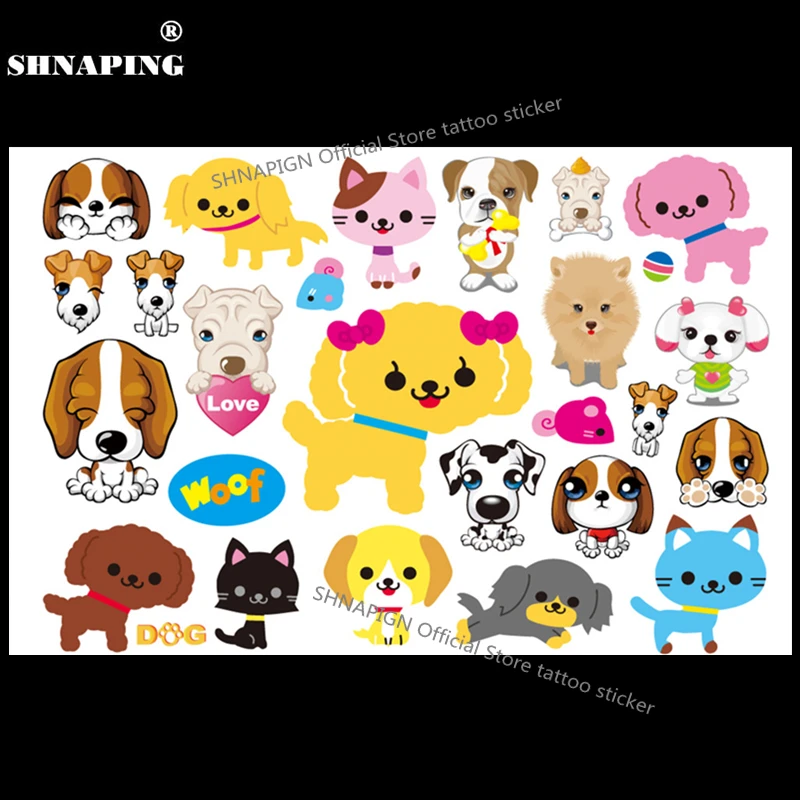 Временная татуировка SHNAPIGN щенок собаки, детская, боди-арт, флеш-татуировка, наклейка s 17*10 см, водостойкая, для домашнего декора, стильная тату-наклейка