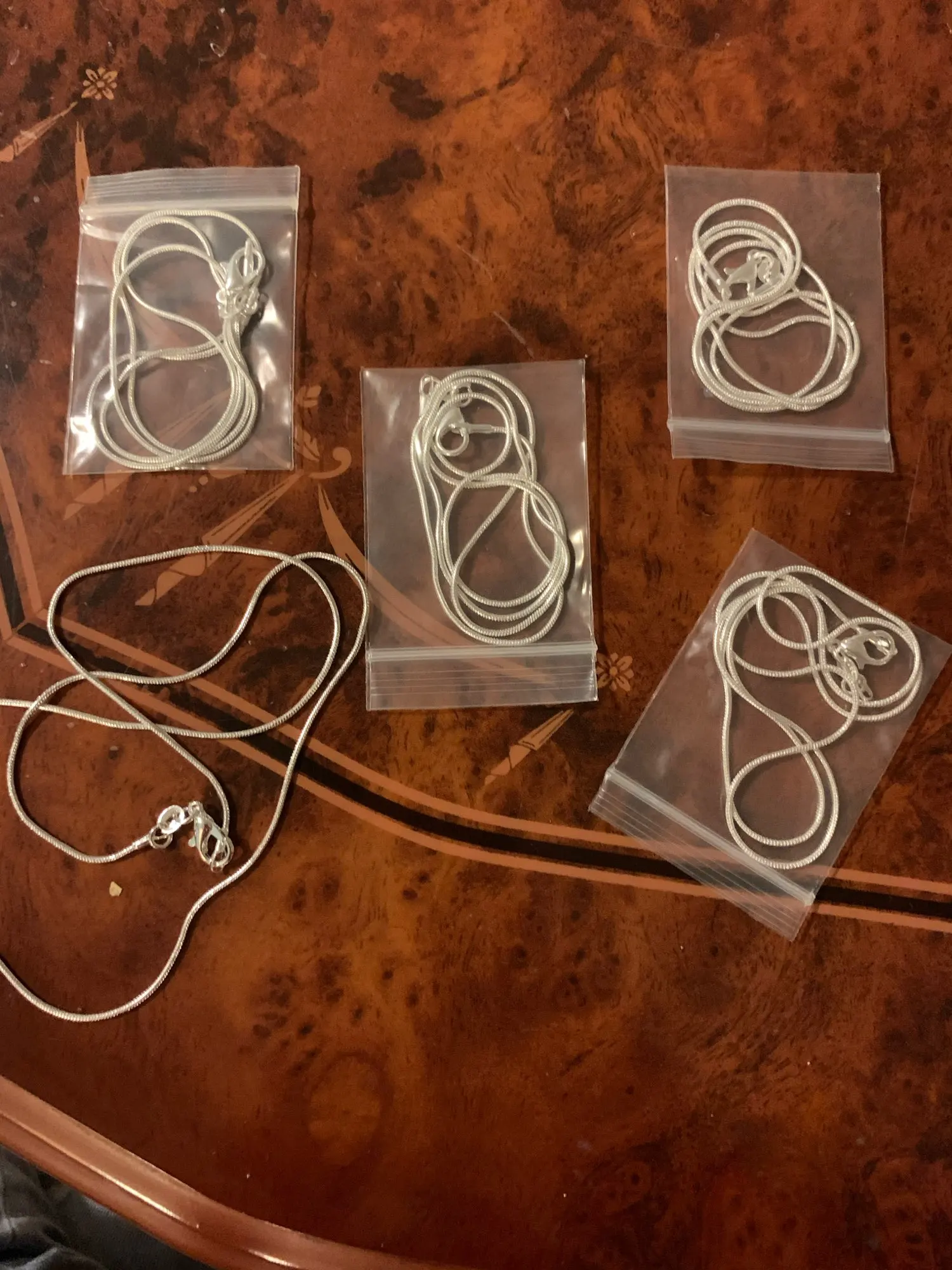 я просила прислать 20,22,24дюйма. продавец все положил, как я и просила. мне понравились. не серебро конечно, но на пару раз выйти прогулять какой кулончик норм.