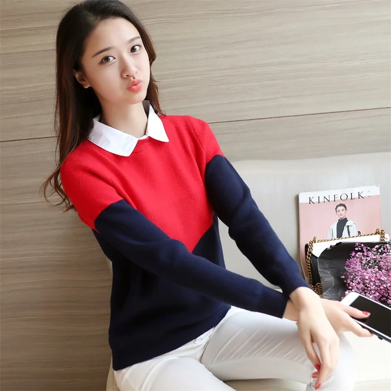Новинка 2021, женская трикотажная цветная рубашка OHCLOTHING, свитер с воротником, F1517