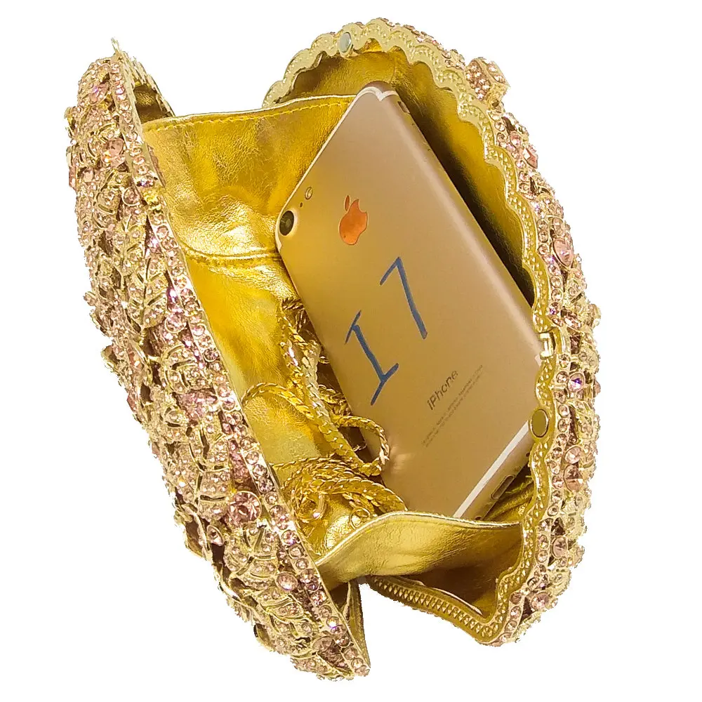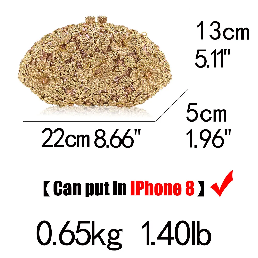 Женский Вечерний Клатч Boutique De FGG, блестящая сумочка цвета шампанского с цветами и кристаллами, вечерняя сумочка для торжественных случаев, Свадебный Кошелек